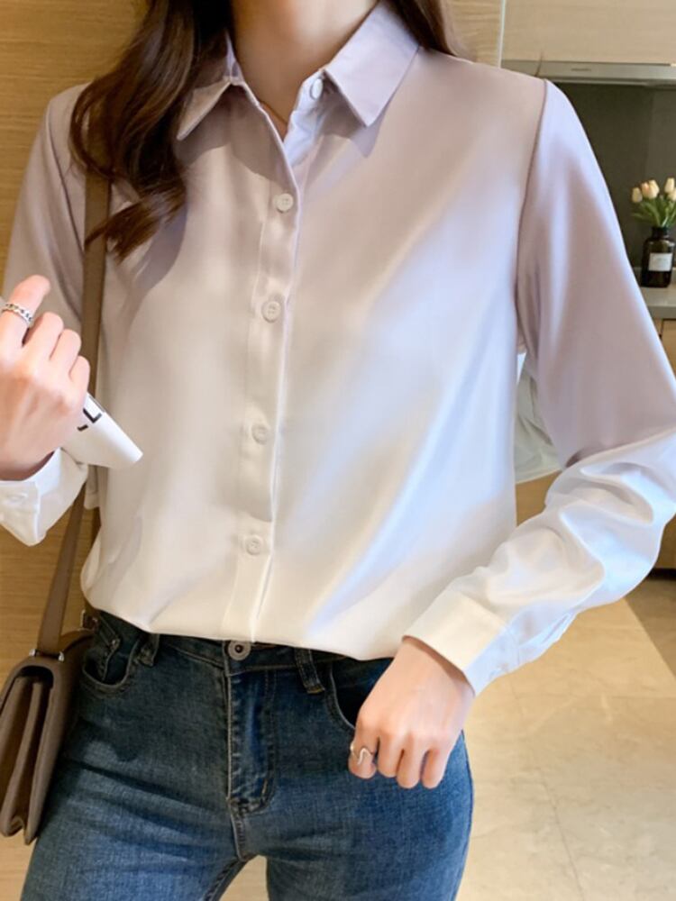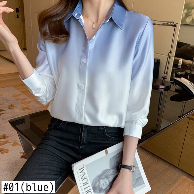 [EWQ] レディース グラデーション シフォン シャツ ルーズ コントラスト カラー 長袖 ブラウス トップス 春美しいオフィス ' トップス 16Y9254 ロング スプリング 春物 会社 学校 通勤や通学にも