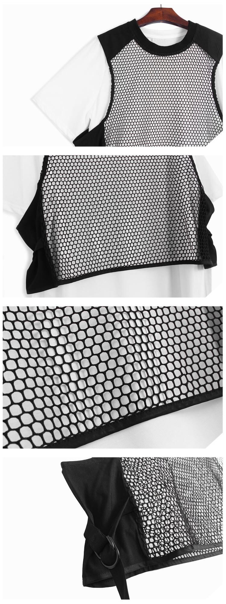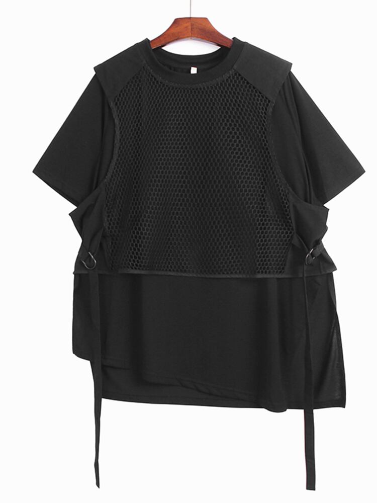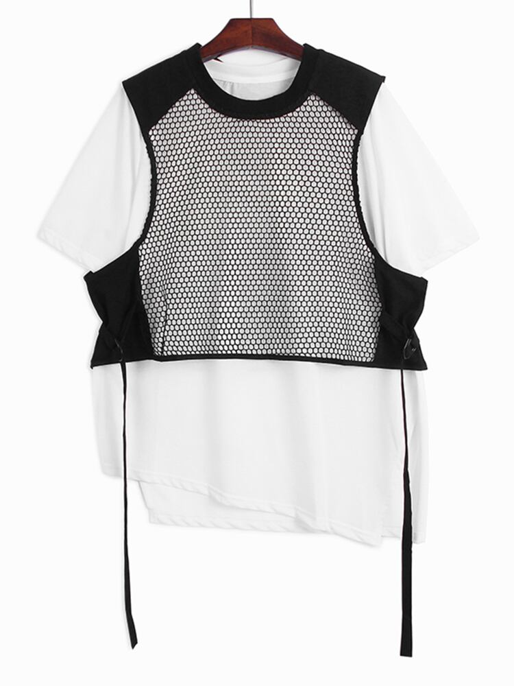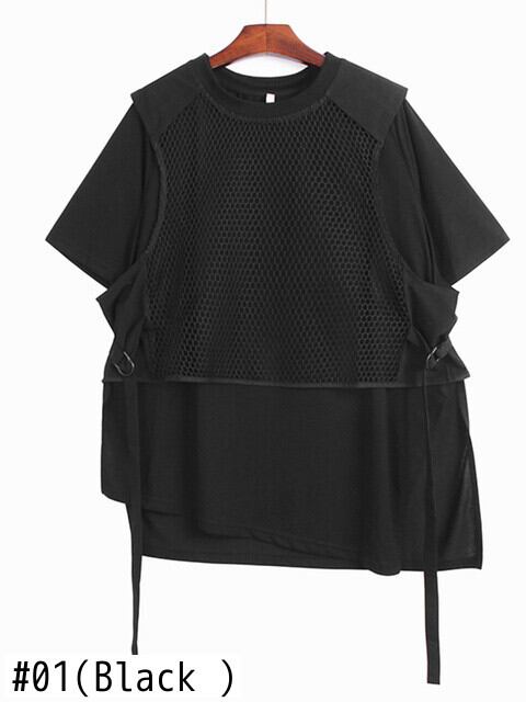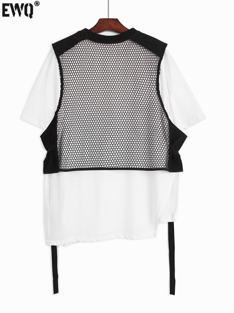[EWQ] ネットグリッド Tシャツ 2 枚組 コントラストカラー ルーズ レディース トップス 夏 ストリート トレンド レディース Y8907 サマー 夏物