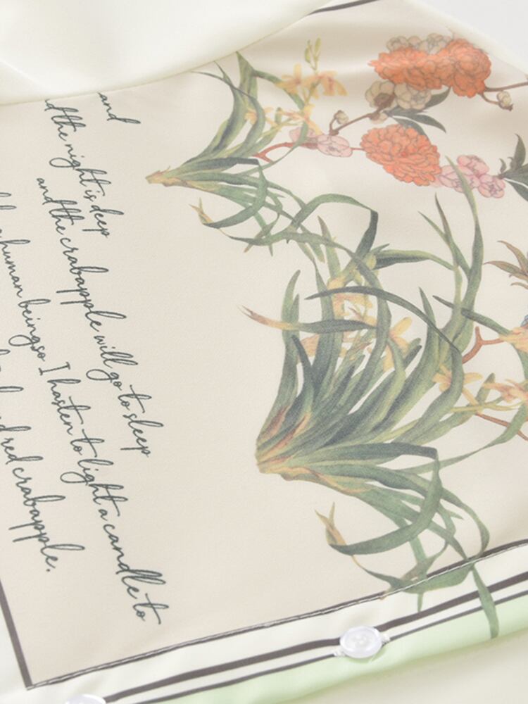 [EWQ] レディース プリント コントラスト シャツ 長袖 因果 レター フラワー シングルブレスト ブラウス 春潮 トップス ロング スプリング 春物 フラワーデザイン