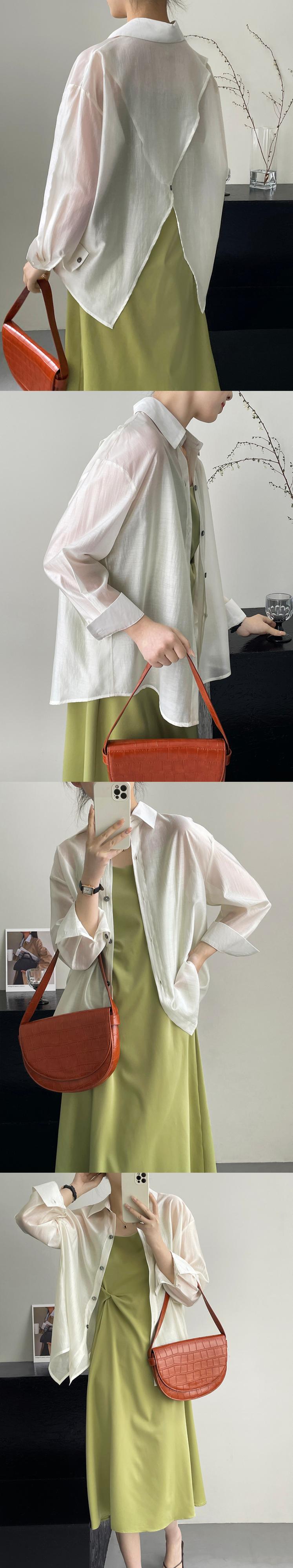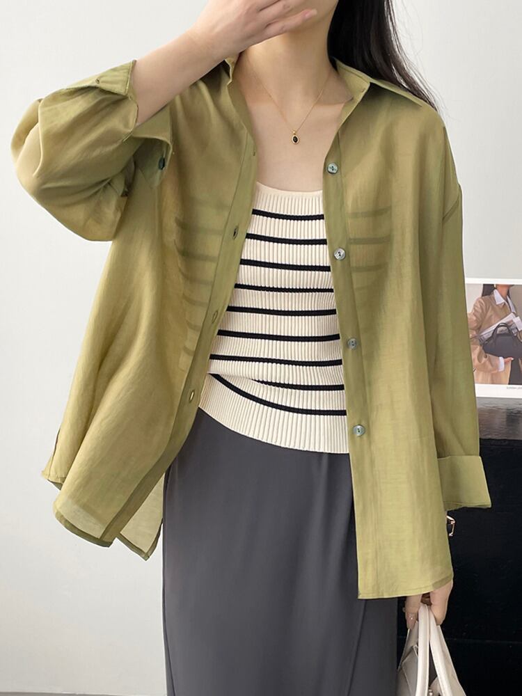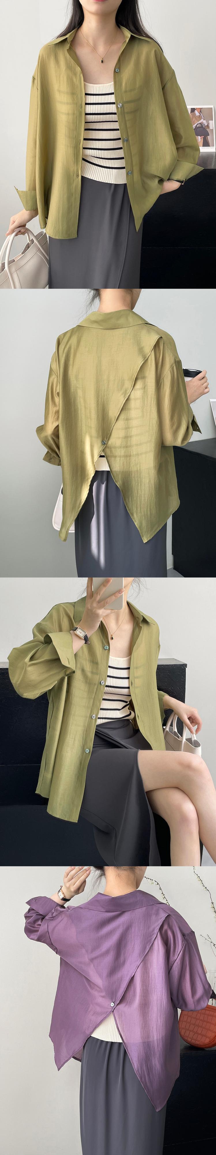 [EWQ] バックスプリットボタンシャツ長袖ルーズ視点ブラウス夏潮薄手トップス 16Y9229 ロング サマー 夏物