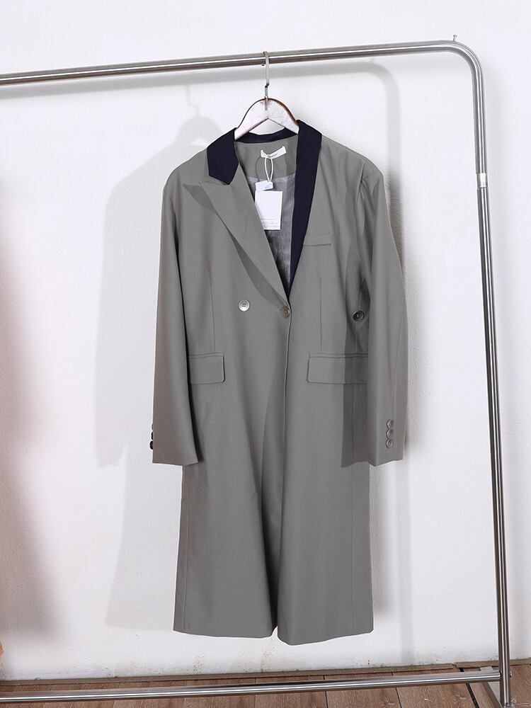 [EWQ] スプライシング トレンド オーバーコート 春 長袖 コート アウター パッチワーク OL ウインドブレーカー グレー ロング スプリング 春物 会社 学校 通勤や通学にも