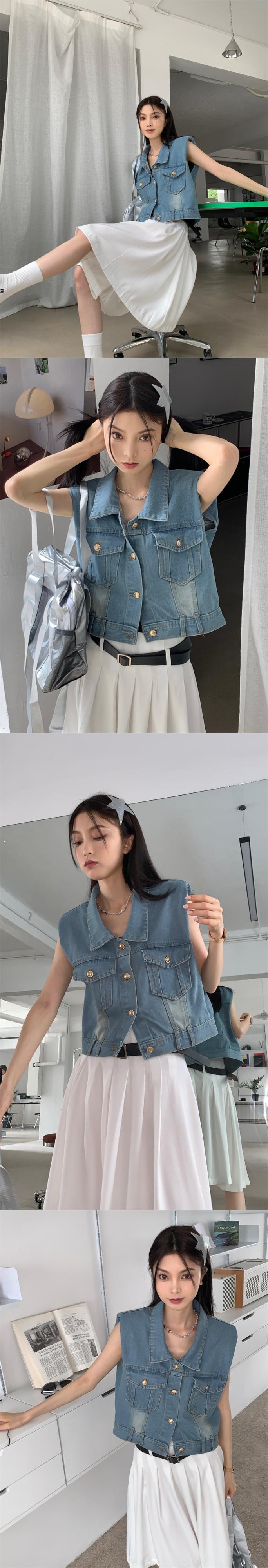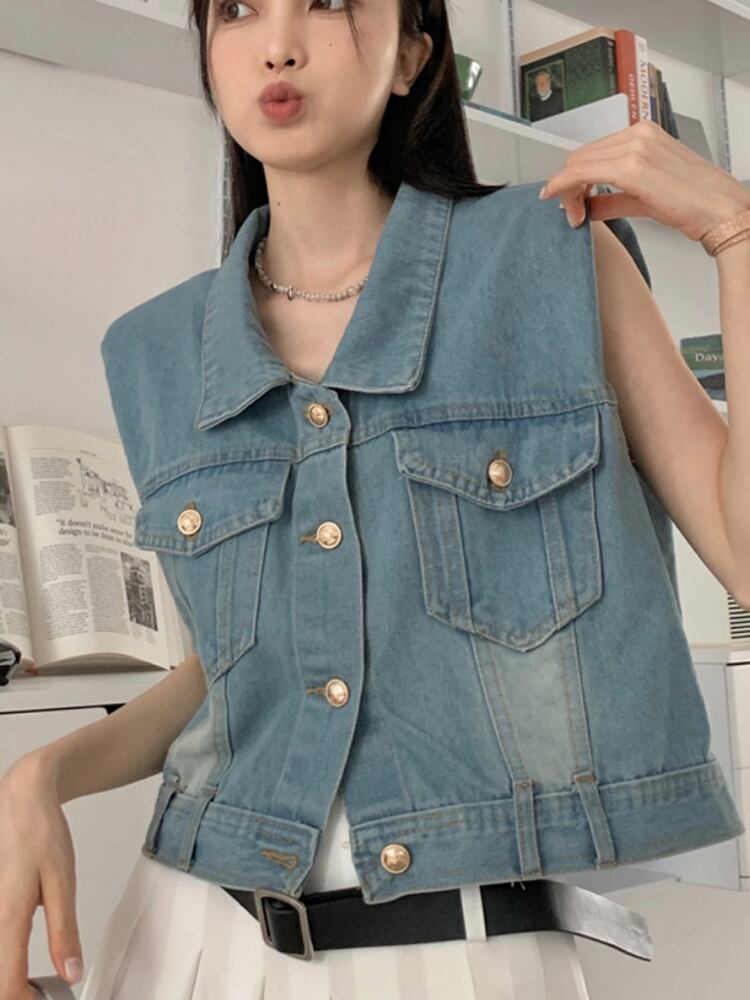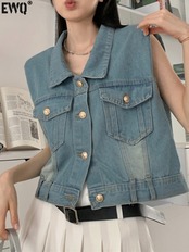 [EWQ] デニムベストシングルブレストストリートウェアノースリーブジャケット夏潮チョッキ生き抜く 9362 サマー 夏物