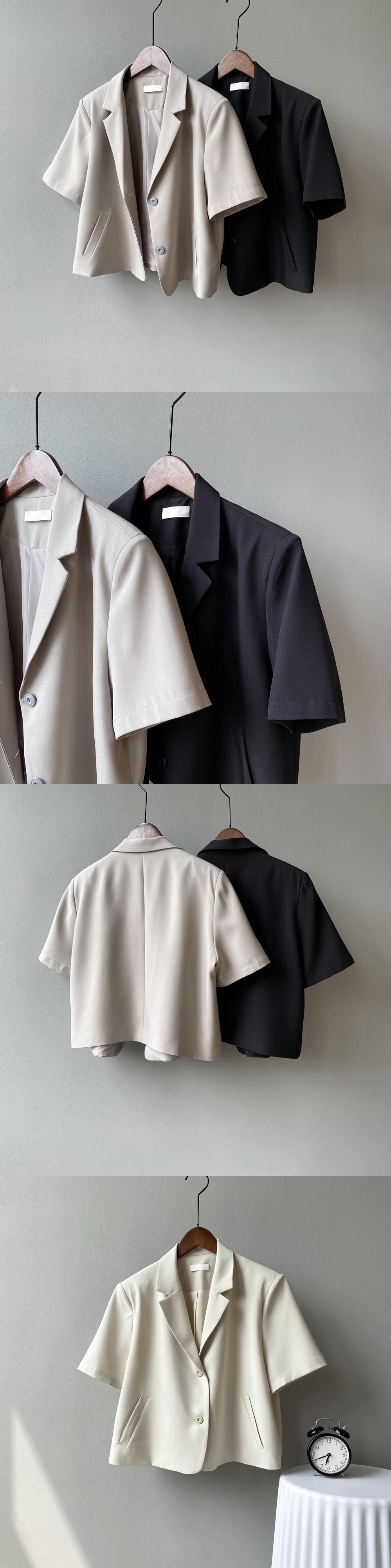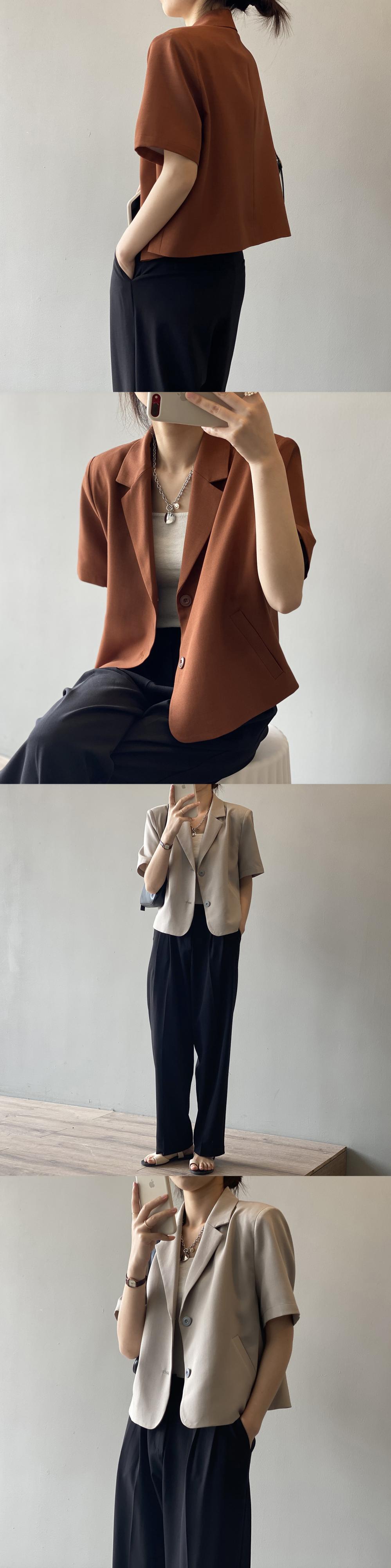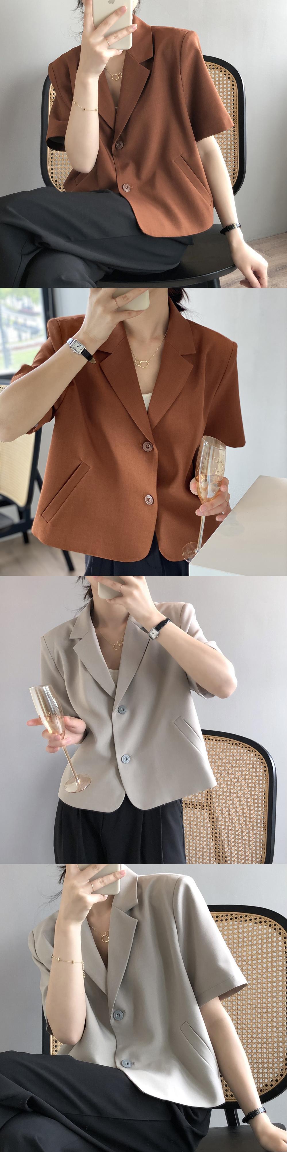[EWQ] 半袖ブレザーコート夏潮 2 ボタンルーズノッチスーツジャケット薄手生き抜く Y9402 ショート ハーフスリーブ サマー 夏物