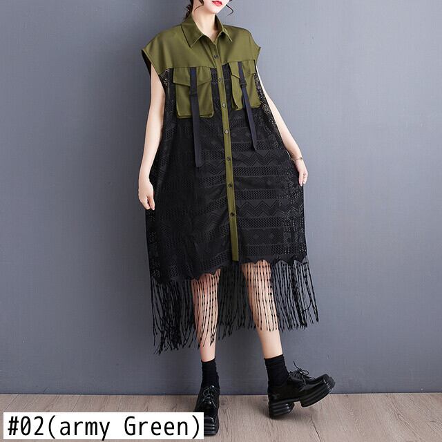 [EWQ] 特大ベストドレスコントラストスプライスメッシュテルビッグサイズシャツドレス夏潮ボタン Vestido 322 サマー 夏物