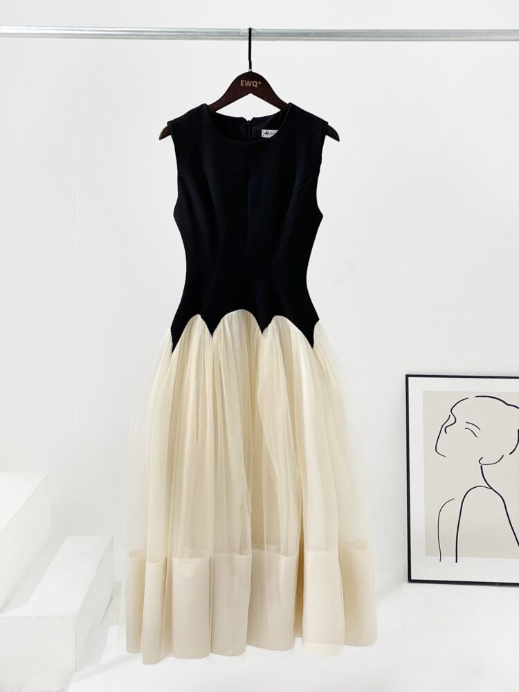 [EWQ] 甘いプリーツベストドレスノースリーブメッシュスプライシングドレス夏美しい誕生日パーティー 16Y749 大人ガーリー スウィート キュート カジュアル サマー 夏物