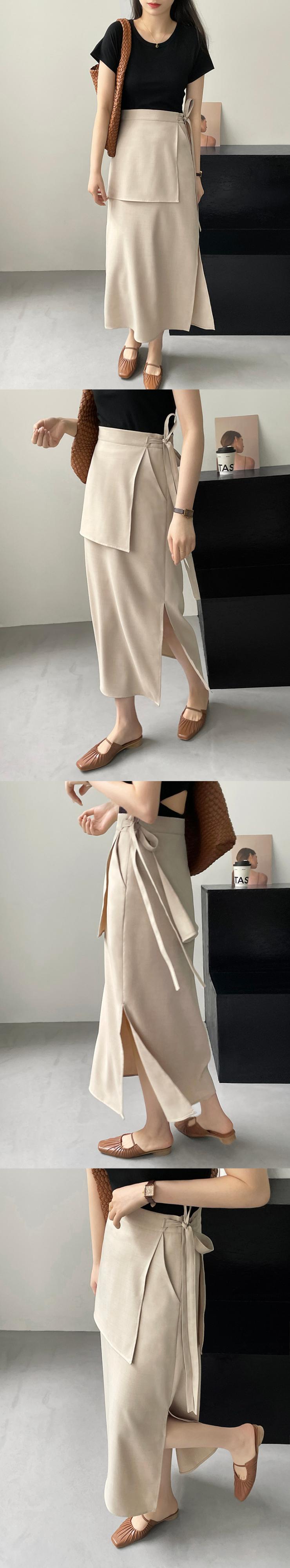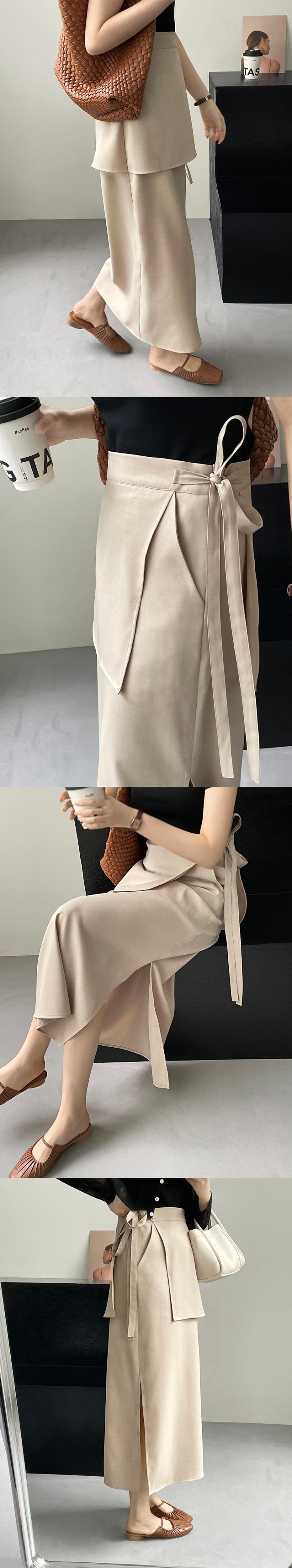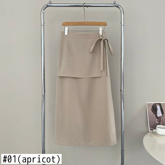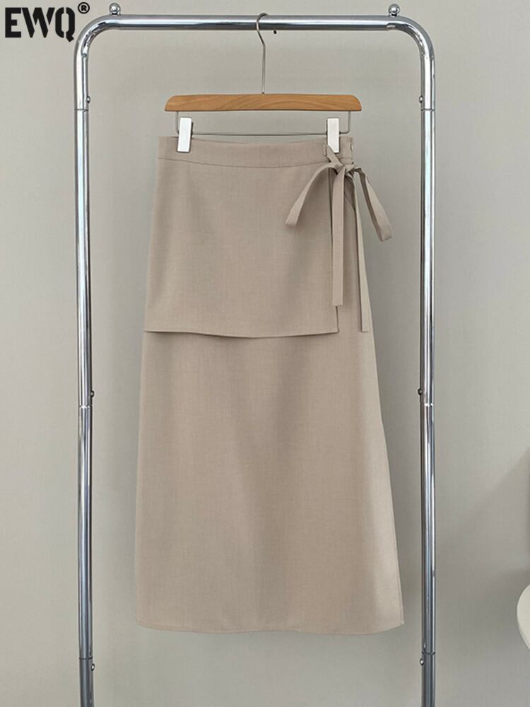 [EWQ] フェイクツーピース包帯 A ラインスカート無地ウエストサイド分割ミッドカーフスカート夏 サマー 夏物 Aライン ソリッドカラー