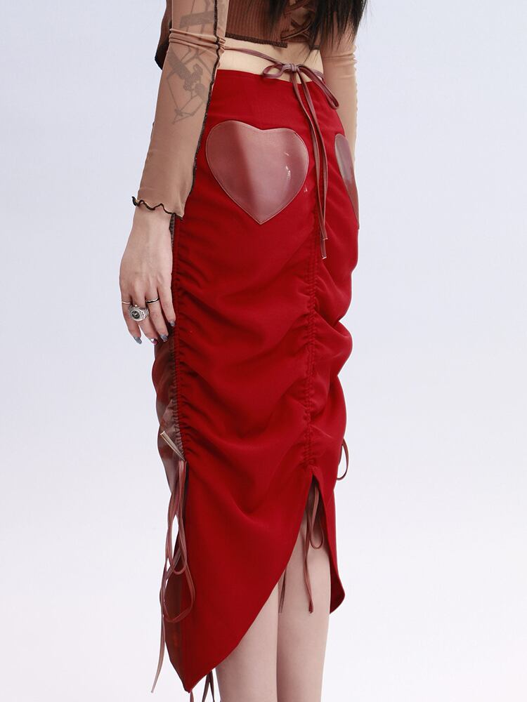 [EWQ] コントラスト巾着スカートストリートラブポケットパッチワークプリーツワーシトスカート夏潮 68 サマー 夏物