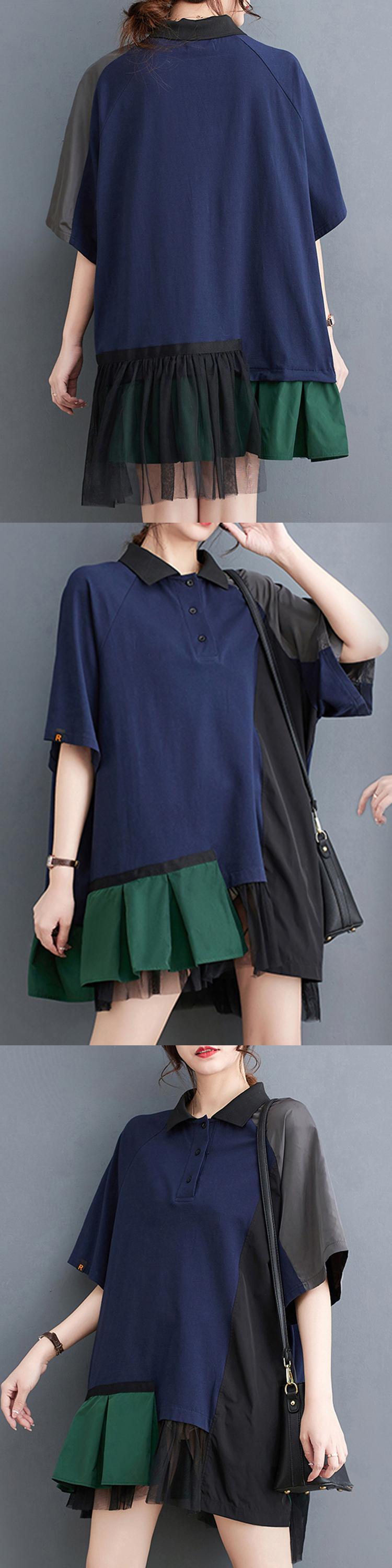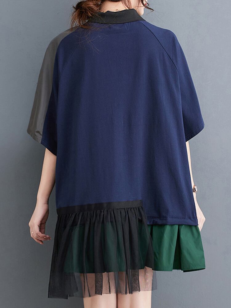 [EWQ] 刺繍胸 T シャツドレスビッグサイズメッシュスプライシングルーズドレス夏潮半袖 Vestido ショート レッド ハーフスリーブ サマー 夏物 Tシャツ