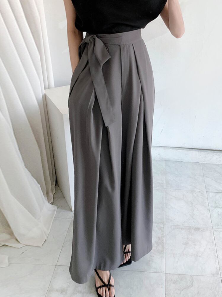 [EWQ] スーツパンツウエストレースアッププリーツワイドレッグパンツ春夏潮オールマッチ服 スプリング 春物 サマー 夏物 ワイドパンツ