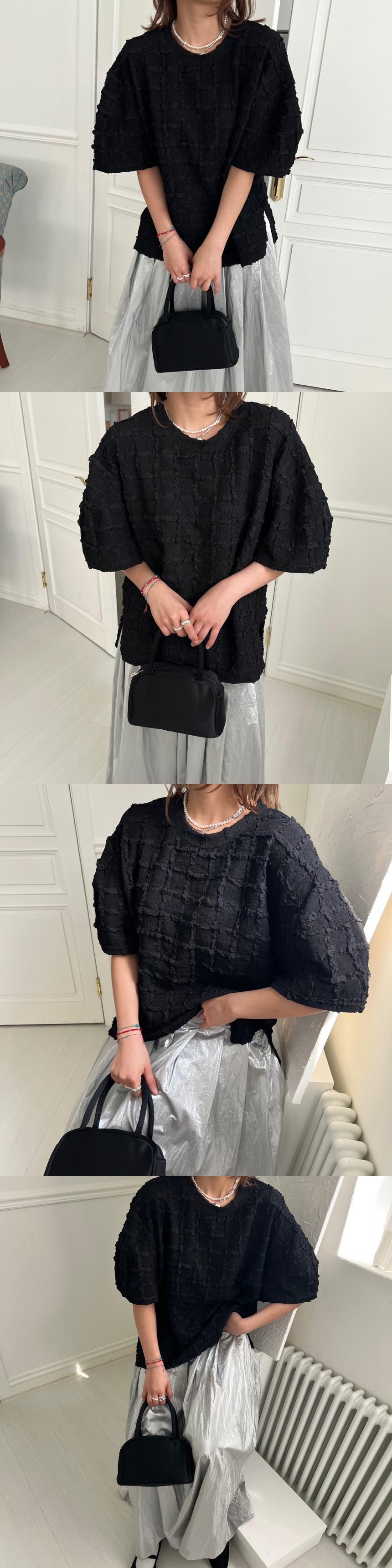 [EWQ] O ネックチェック柄ソリッドカラーシャツパフスリーブルーズトップ夏潮トップス 16Y9246 サマー 夏物 Oネック