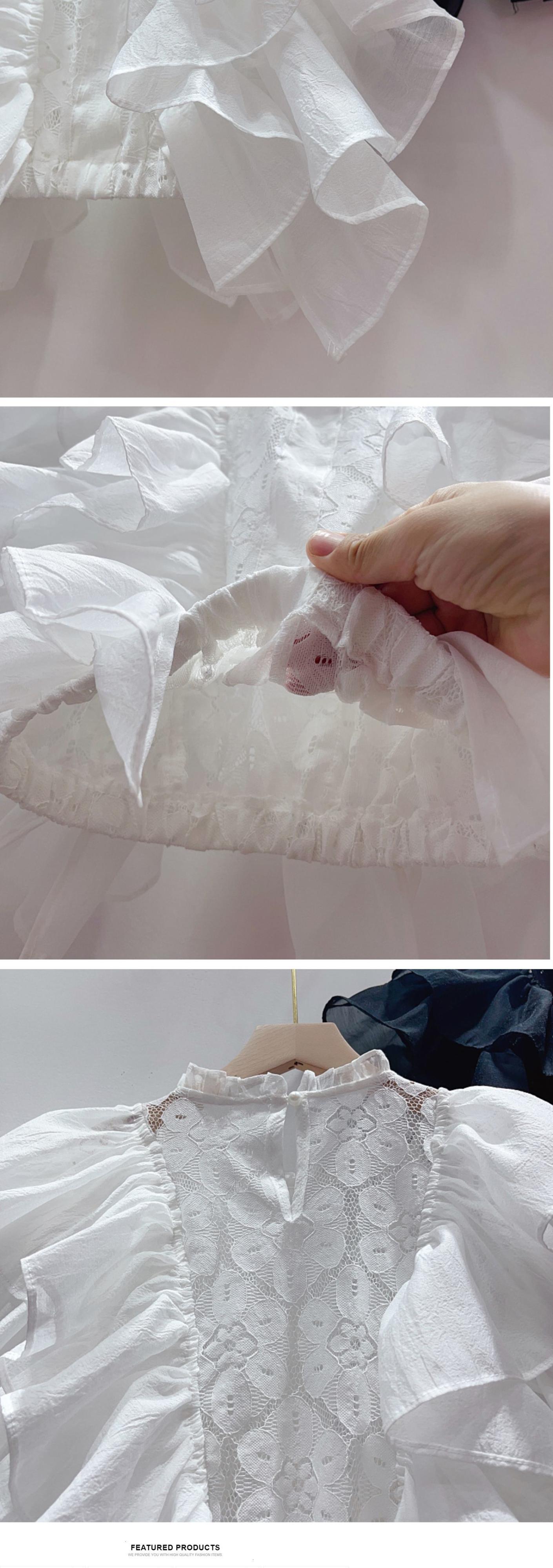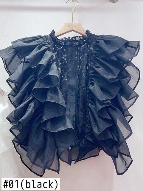 [EWQ] セクシーレースフックフラワーシャツフライングスリーブフリルスプライスソリッドカラーブラウス夏潮トップス 6Y9102 サマー 夏物 フラワーデザイン