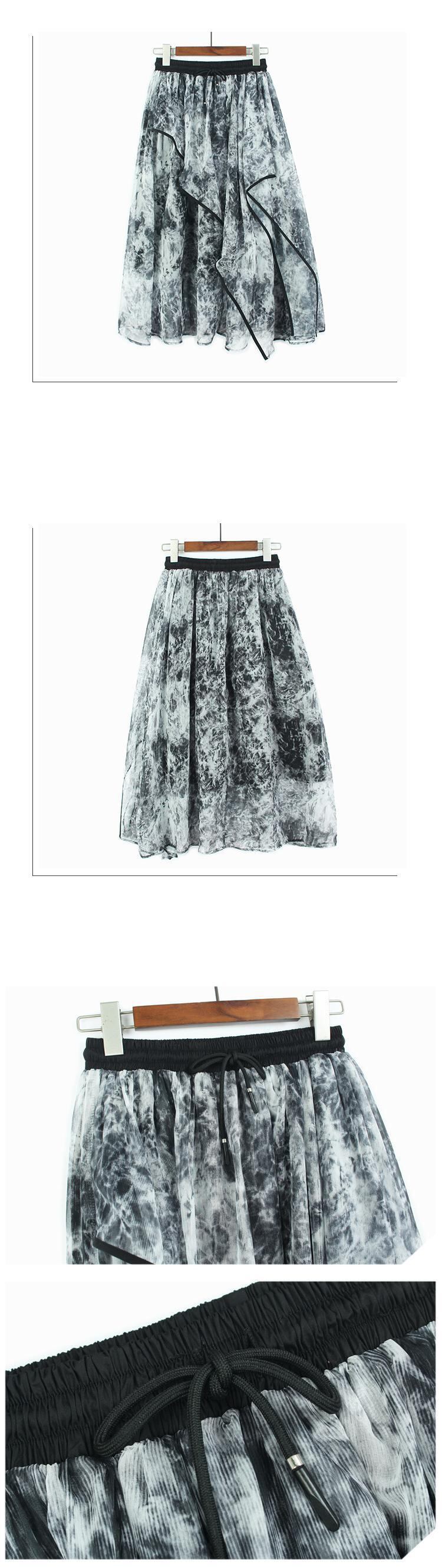 [EWQ] タイダイプリントレースアップスカートコントラスト弾性ウエストミッドカーフスカート夏潮ファルダス 916 エラスティック 伸縮 サマー 夏物