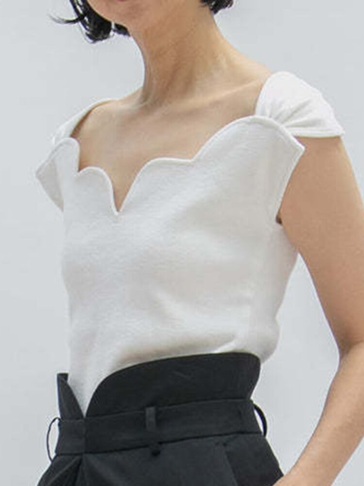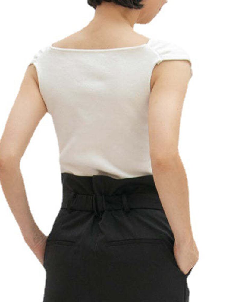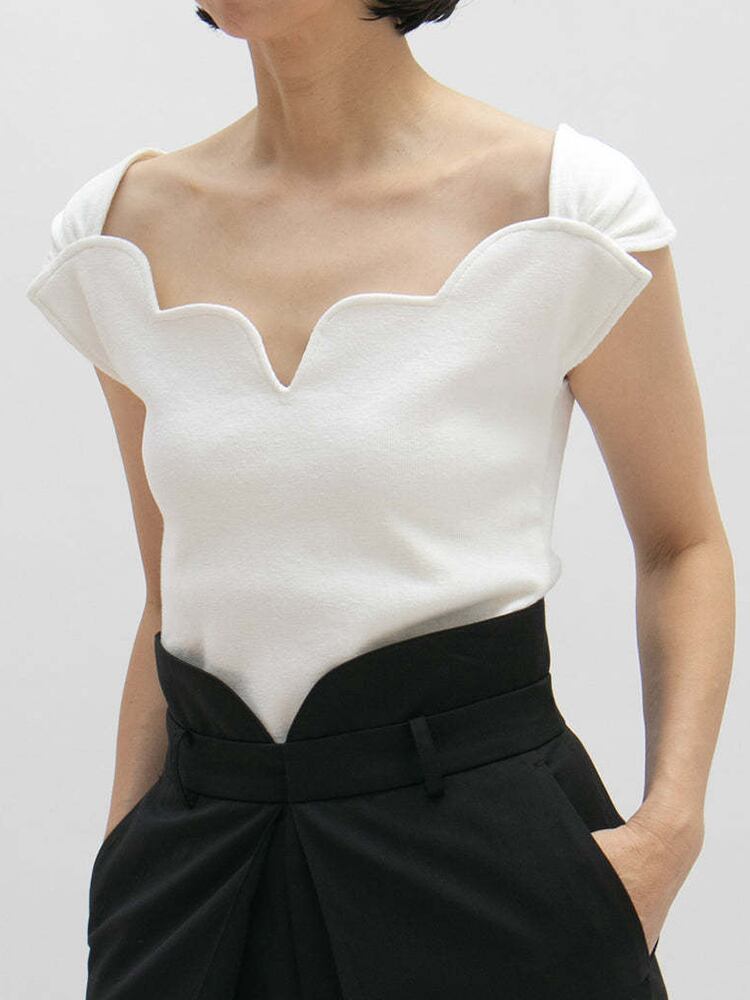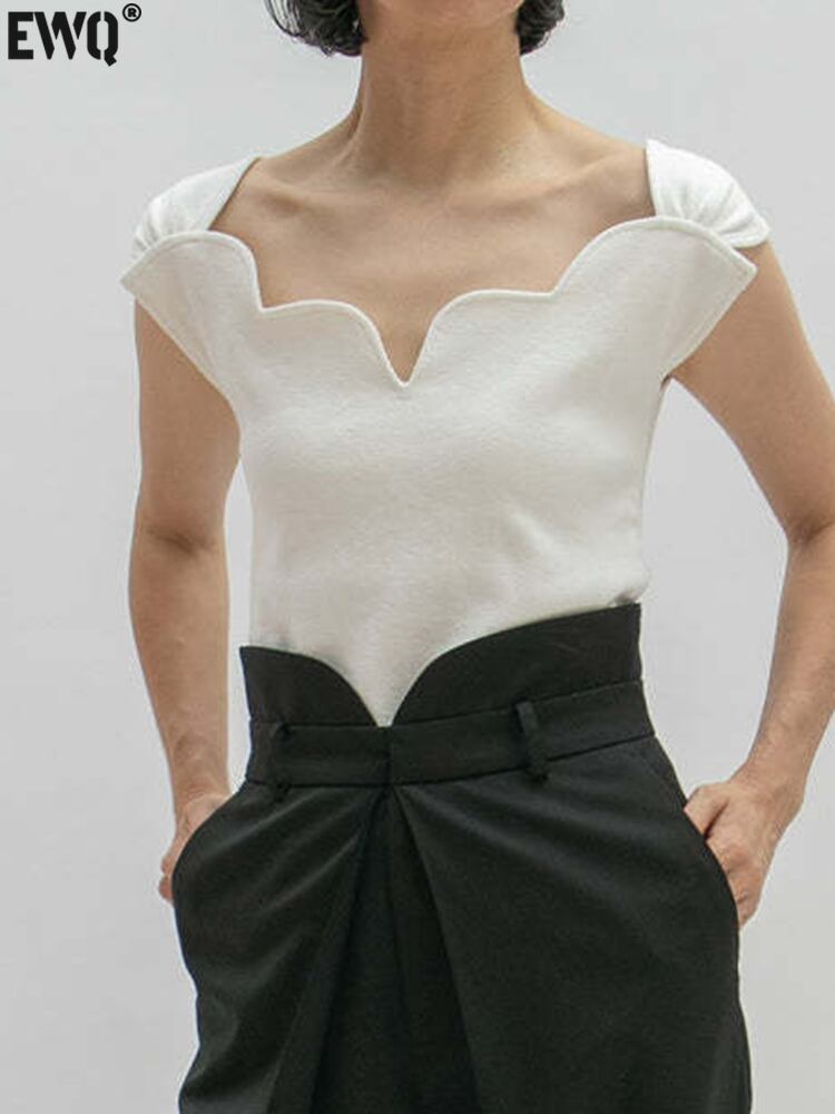 [EWQ] 人気スリムフィット Tシャツ薄い弾性半袖 Tシャツトップ不規則スクエアネック夏潮トップス ショート ハーフスリーブ エラスティック 伸縮 サマー 夏物 スクウェア