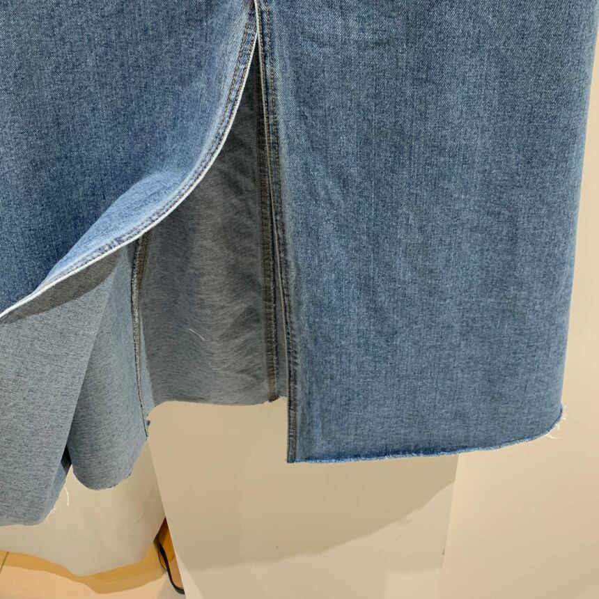 [EWQ] フロントスプリットデニムスカートウエストスリムポケットブルーミッドカーフスカート夏潮ストリート服 サマー 夏物