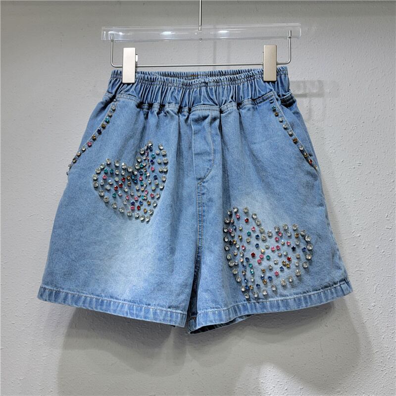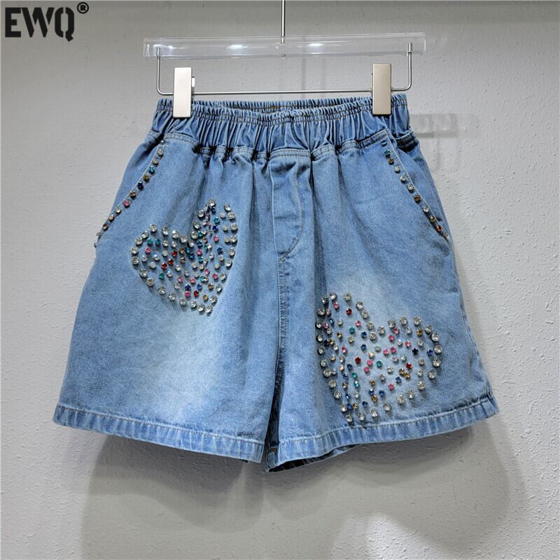 [EWQ] ラブダイヤモンドビーズデニムショートパンツポケットウエストストリートコントラストカラー夏潮ショーツジーンズ 336 サマー 夏物 ブルマー