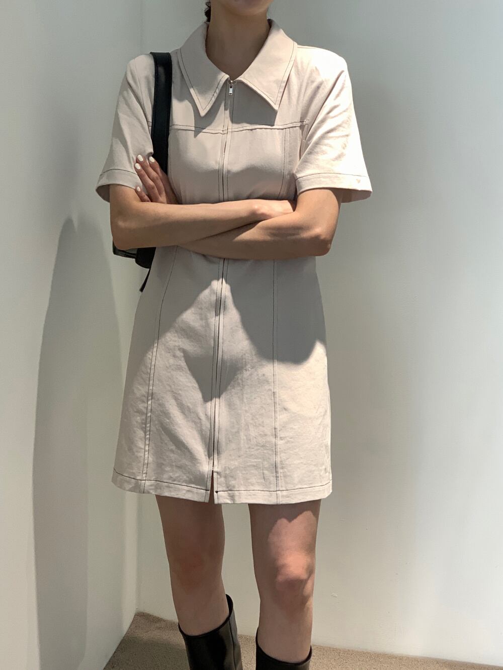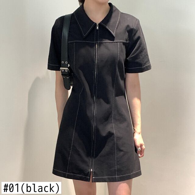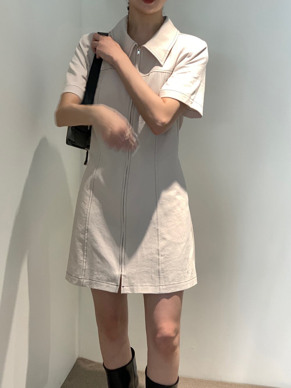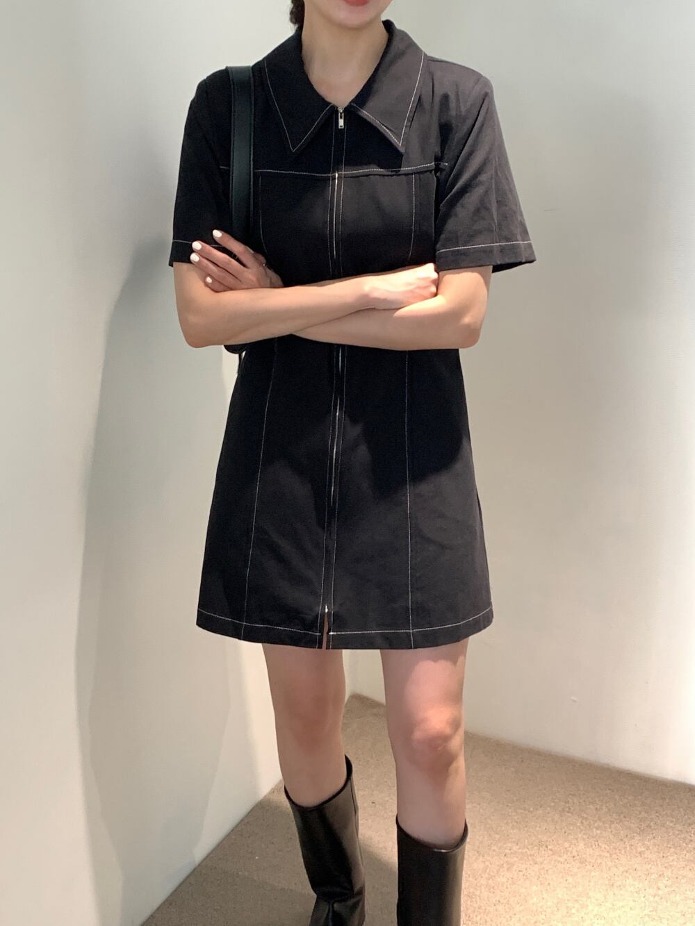 [EWQ] ラペルミニドレスコントラストカラーラインポケットスリムウエストショートドレス夏潮ジッパー Vestido 8875 サマー 夏物