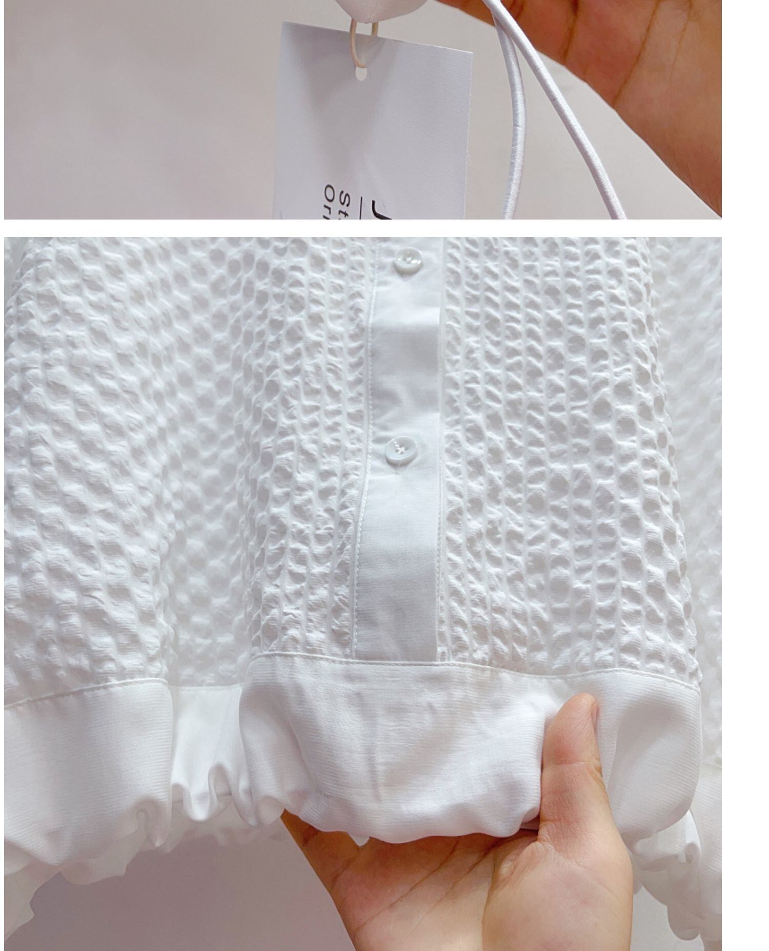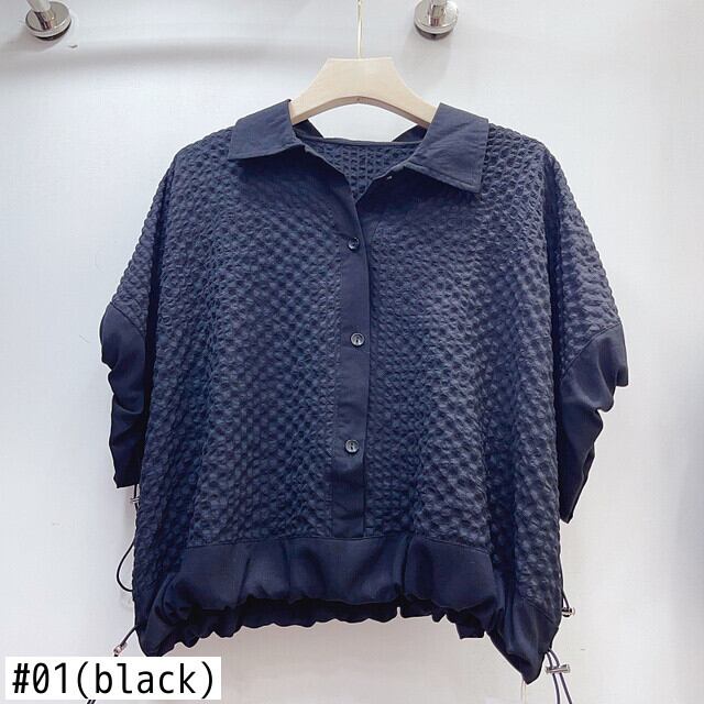 [EWQ] ターンダウンカラー立体プリーツ半袖シャツ夏裾巾着ウエストルーズブラウス ショート ハーフスリーブ サマー 夏物