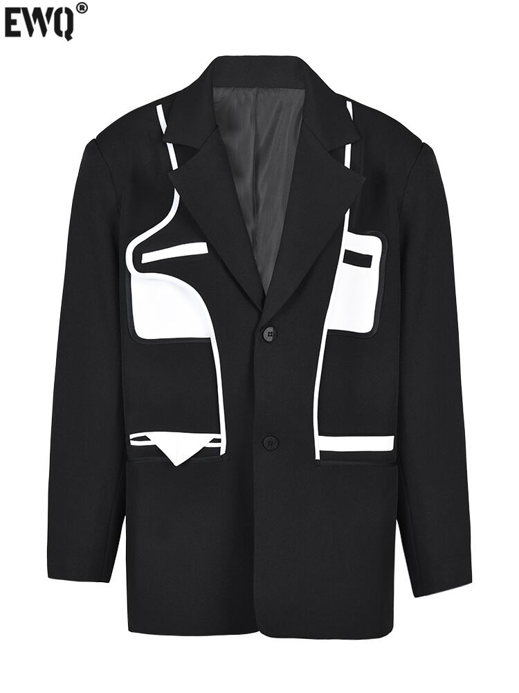 [EWQ] トレンド レディース トップス オーバーコート コントラスト OL 春秋 ブラック ルーズスーツ CP05 スプリング 春物 オータム 秋物 会社 学校 通勤や通学にも