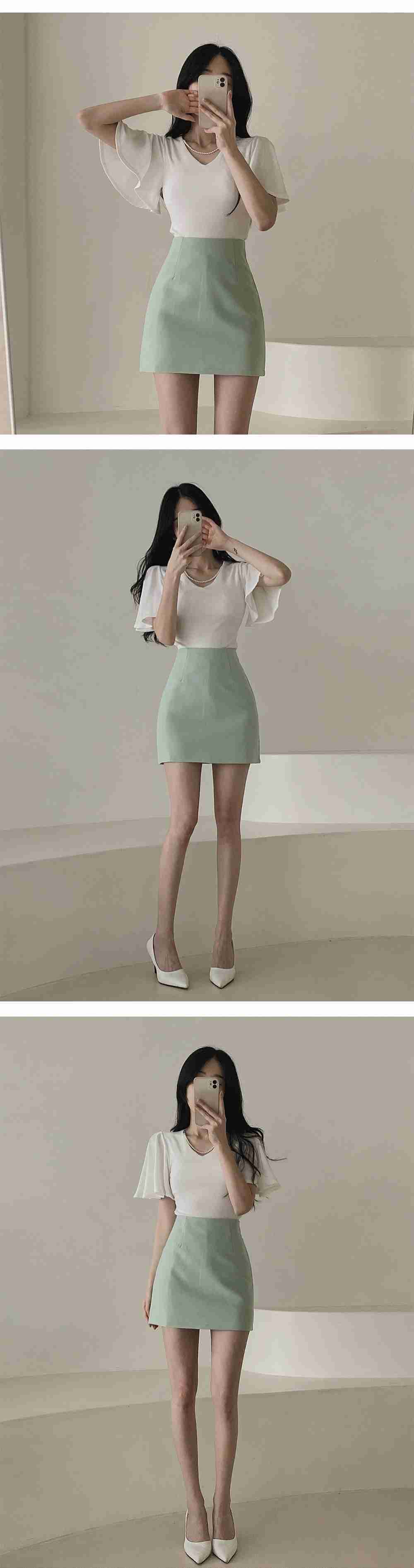 [EWQ] V ネックスリムフィット Tシャツソリッドカラーフレアスリーブ Tシャツトップ夏潮ピンクコットントップ 6Y9598 サマー 夏物 Vネック