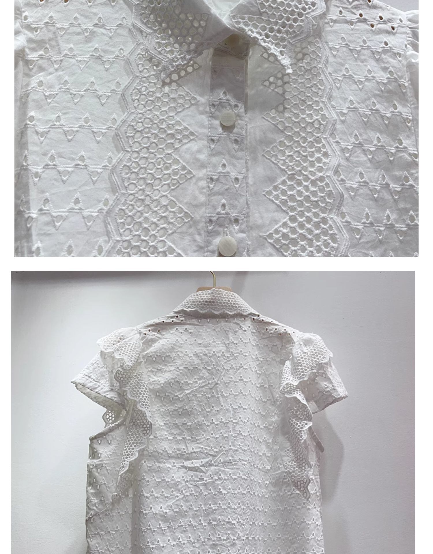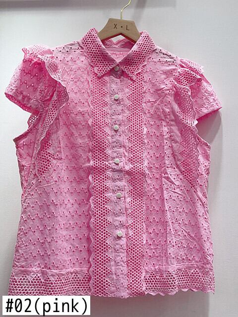 【EWQ】刺繍フックフラワーホロウシャツ半袖カジュアルシングルブレストブラウストップスサマータイド090 ショート ハーフスリーブ 夏物 フラワーデザイン