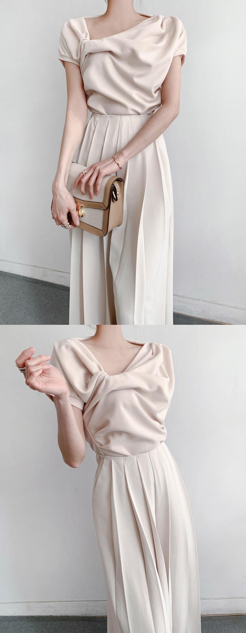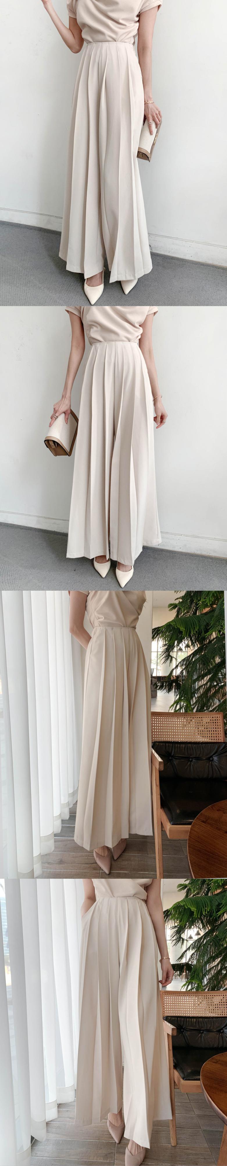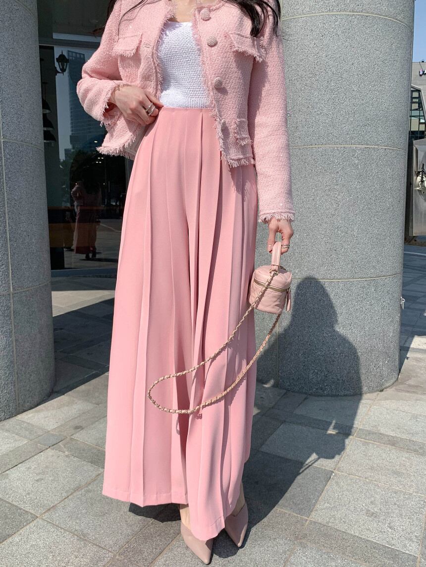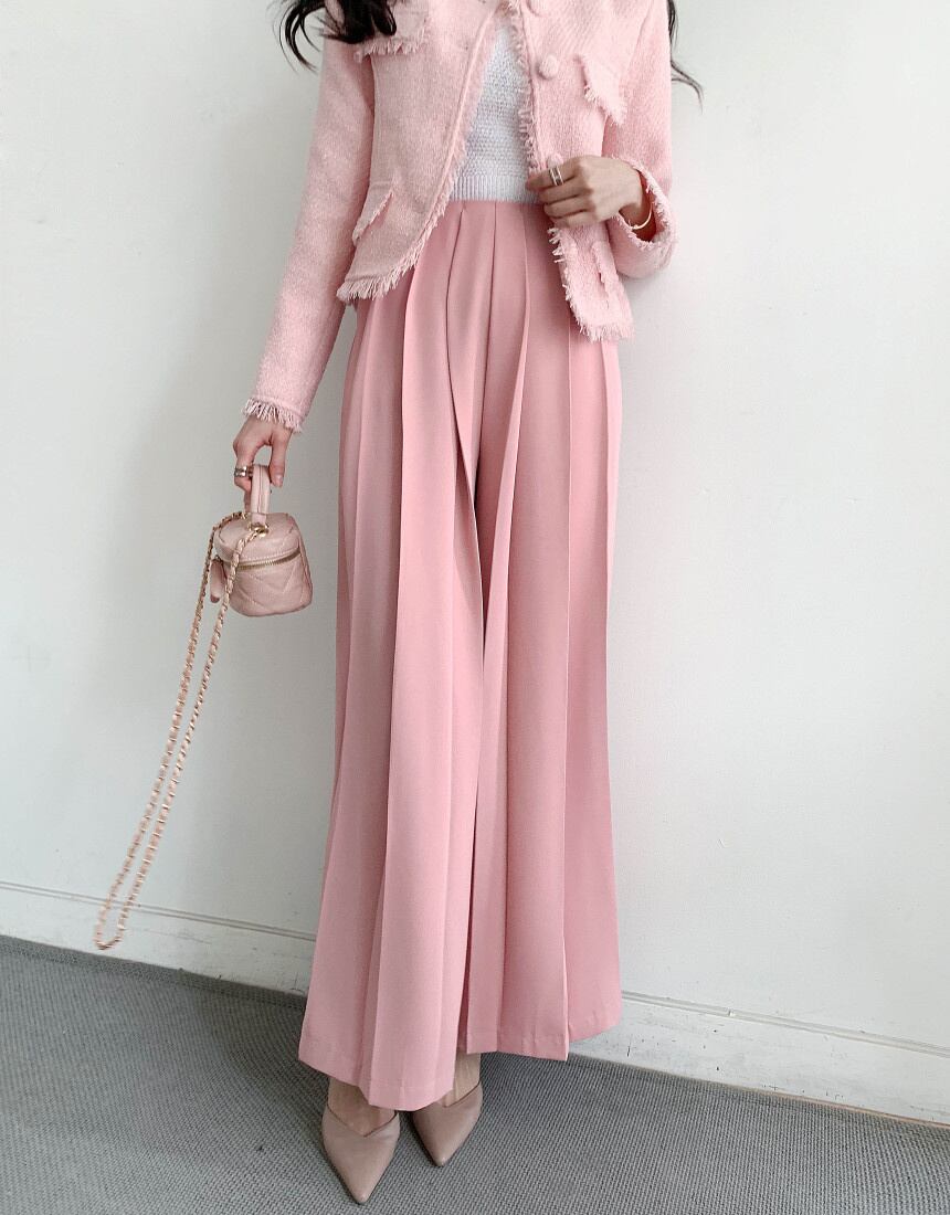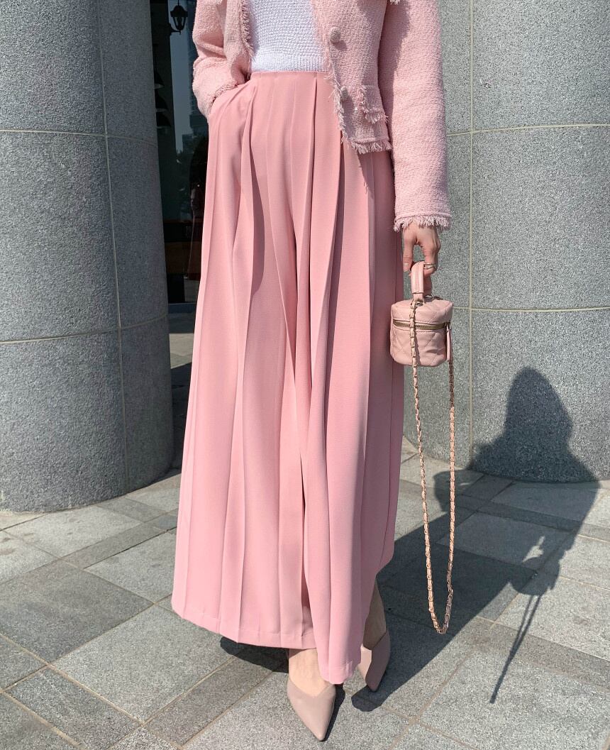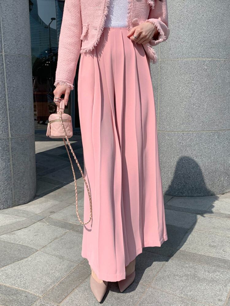 [EWQ] プリーツルーズカジュアルパンツウエストピンクワイドレッグパンツ春夏潮気質服 スプリング 春物 サマー 夏物 ワイドパンツ