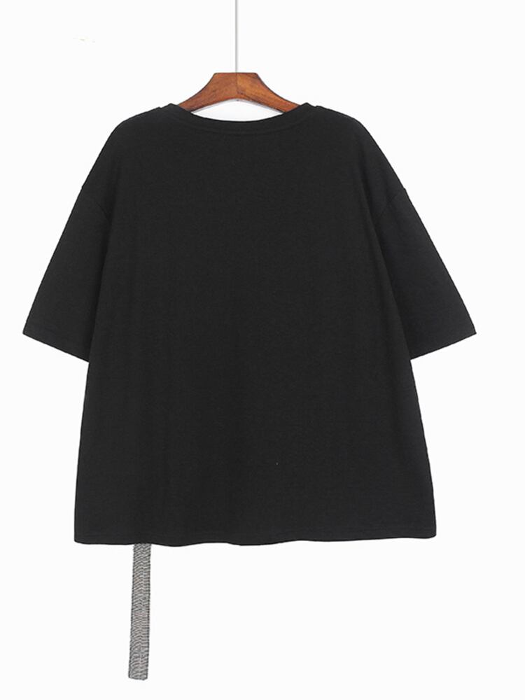 [EWQ] レディースチェックパッチワークブラックホワイト Tシャツ半袖包帯コントラストルーズカジュアル Tシャツトップ夏 ショート レッド ハーフスリーブ サマー 夏物