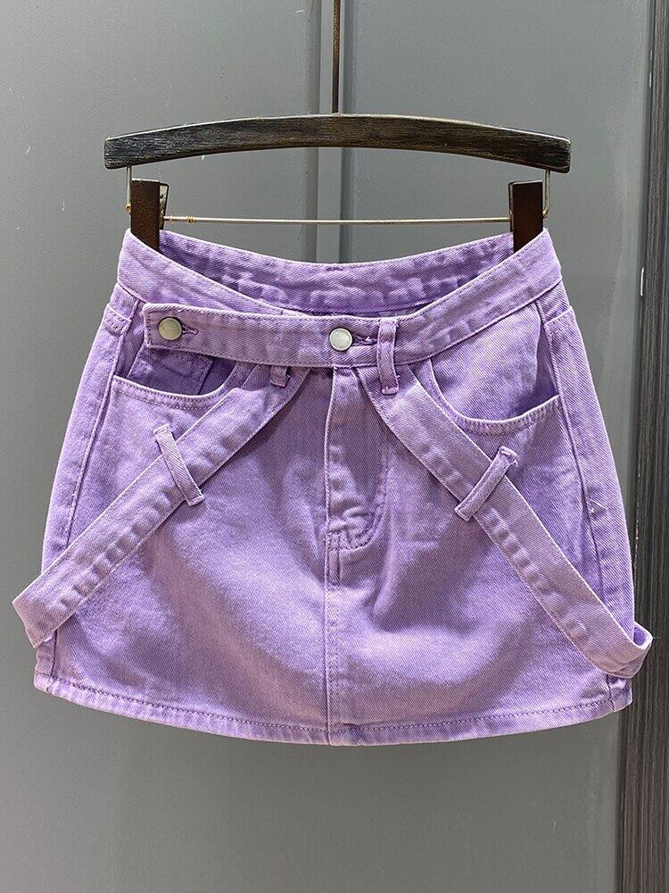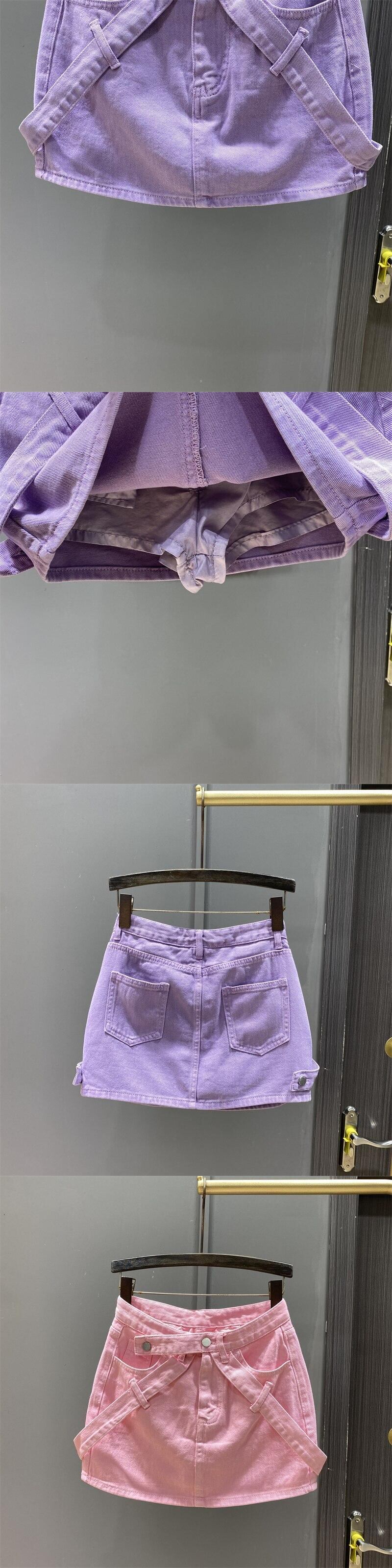 [EWQ] パープルデニムミニスカートウエスト包帯ポケットストリートラップヒップミニスカート夏潮 サマー 夏物