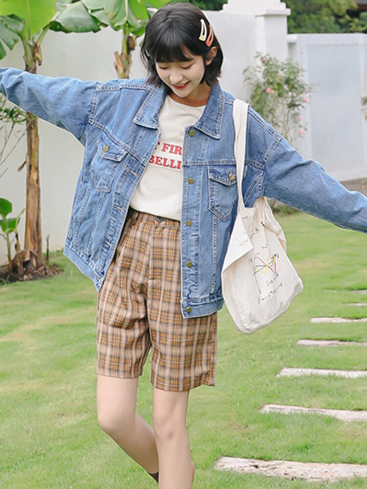 [EWQ] シングルブレストデニムジャケットストリート長袖ポケットパッチワークコート夏潮生き抜く 9489 ロング サマー 夏物