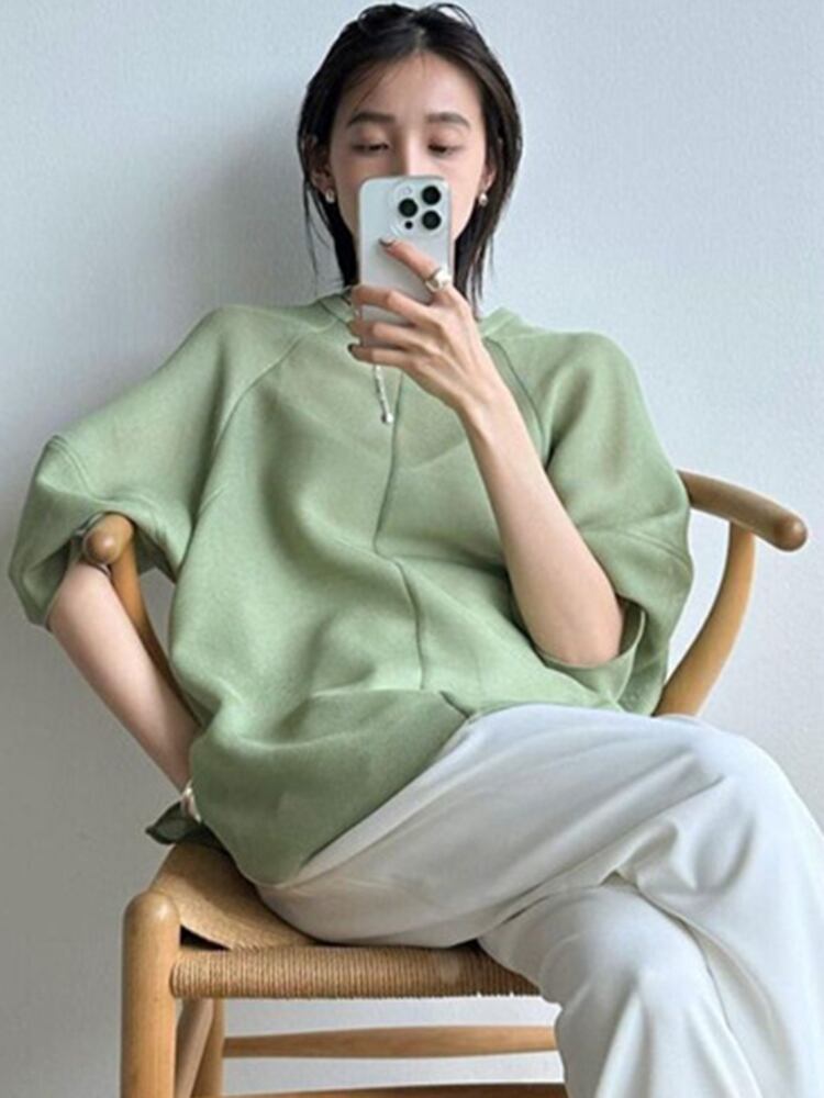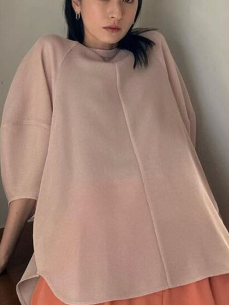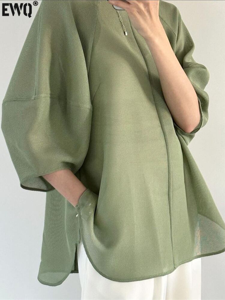 [EWQ] パフスリーブシャツ O ネックルーズ因果特大透明メッシュブラウストップ夏潮トップス 6Y8973 サマー 夏物 Oネック