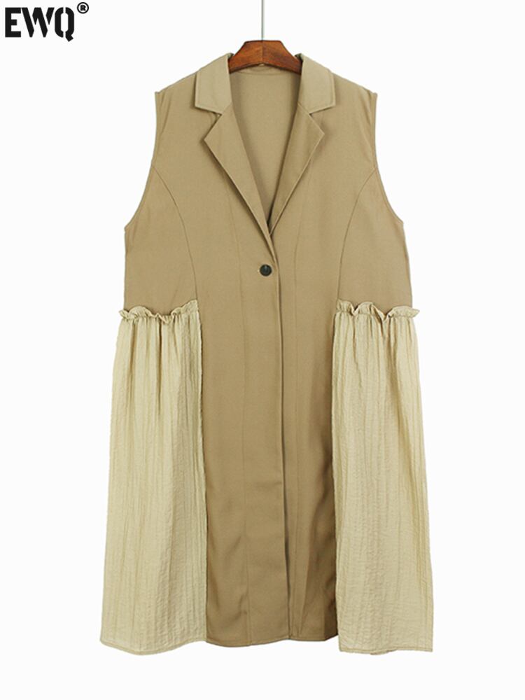 [EWQ] ノッチベストパッチワークプリーツビッグサイズノースリーブジャケット夏潮チョッキ 16Y9528 サマー 夏物