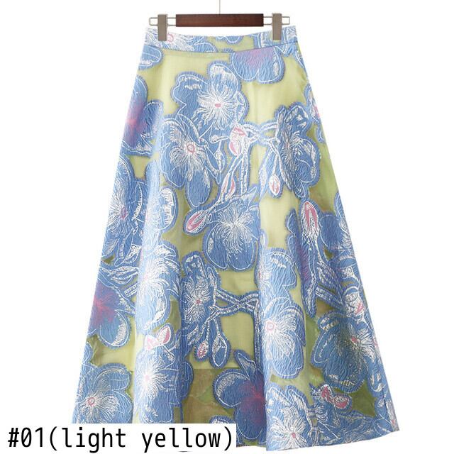 [EWQ] ゴールドジャカードメッシュ刺繍スカートコントラストウエスト A ラインスカート夏オールマッチ服 レッド サマー 夏物 Aライン