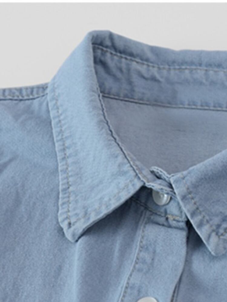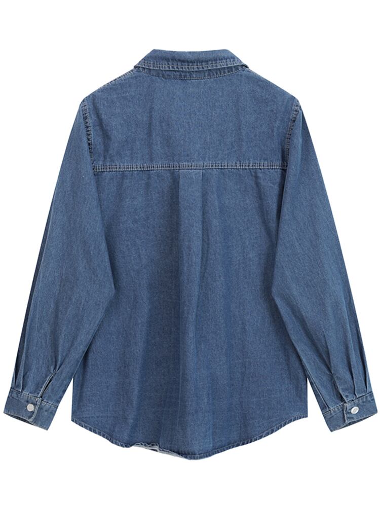 [EWQ] ルーズ長袖デニムシャツ非対称ポケットスプライシングストリートトップ夏潮アウトウェア 16Y9483 ロング サマー 夏物