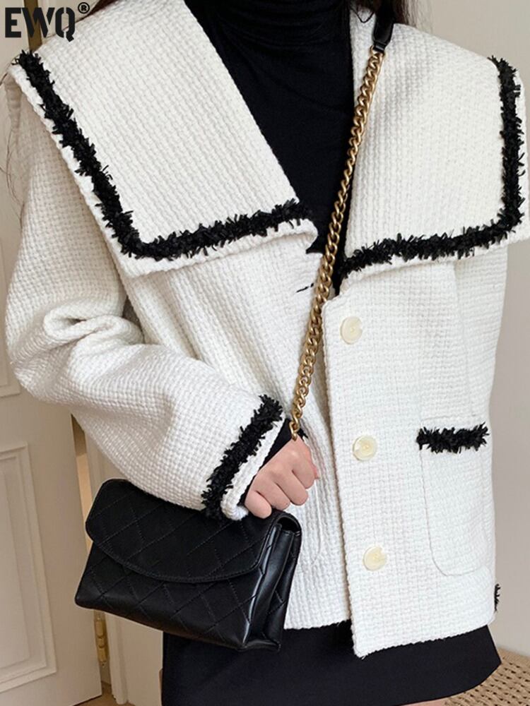 [EWQ] ポケットテルツイードジャケットコントラストカラーラペルルーズシングルブレストコート夏潮アウター サマー 夏物