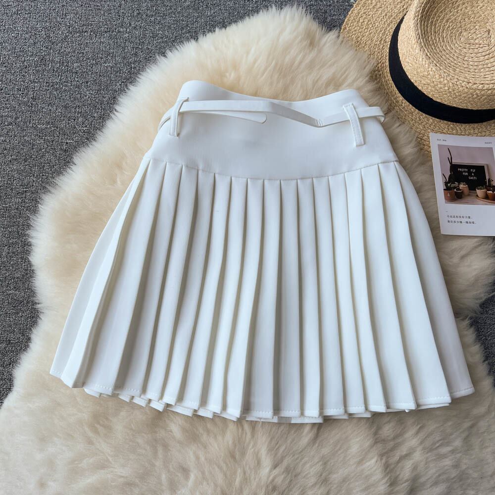[EWQ] ウエストプリーツショートスカートレディース夏甘い Y2K 服無地レースアップミニスカート Y9383 大人ガーリー スウィート キュート カジュアル サマー 夏物 ソリッドカラー