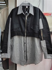 [EWQ] スプライスフェイクツーピースストライプシャツコントラストカラーパッチワークストリート長袖ブラウス夏潮 ロング サマー 夏物