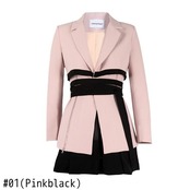【EWQ】ウエストオールマッチ黒スカート2点セット春長袖レースオフィスブレザーピンクコートQX017 ロング ブラック スプリング 春物 会社 学校 通勤や通学にも