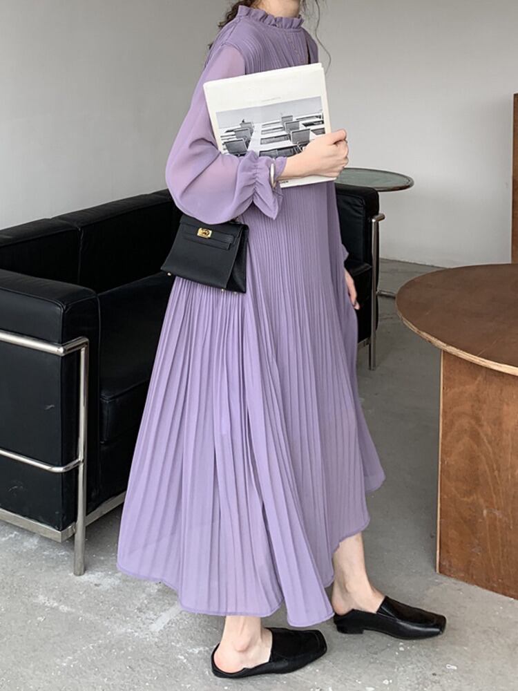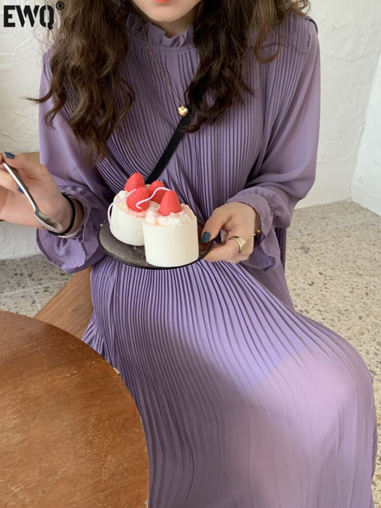 [EWQ] 甘い美しいドレスルーズパープル e 長袖レッドローブ特大夏 16Y6807 ロング 大人ガーリー スウィート キュート カジュアル サマー 夏物