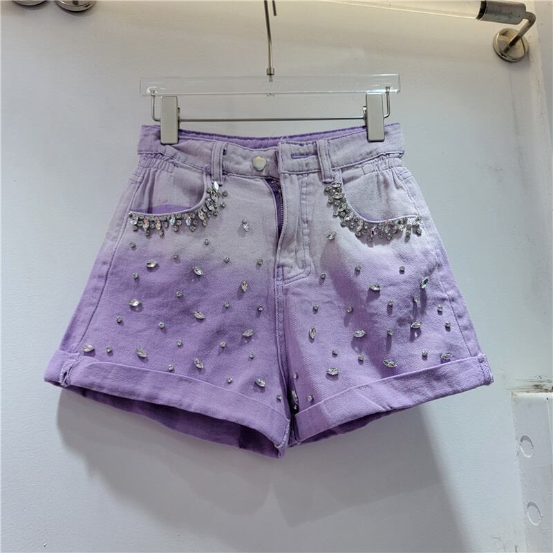 [EWQ] ダイヤモンド グラデーション デニム ショート パンツストリート ポケット ウエスト ホット ショート ジーンズ夏潮 16Y9214 サマー 夏物 ショーツ ブルマー