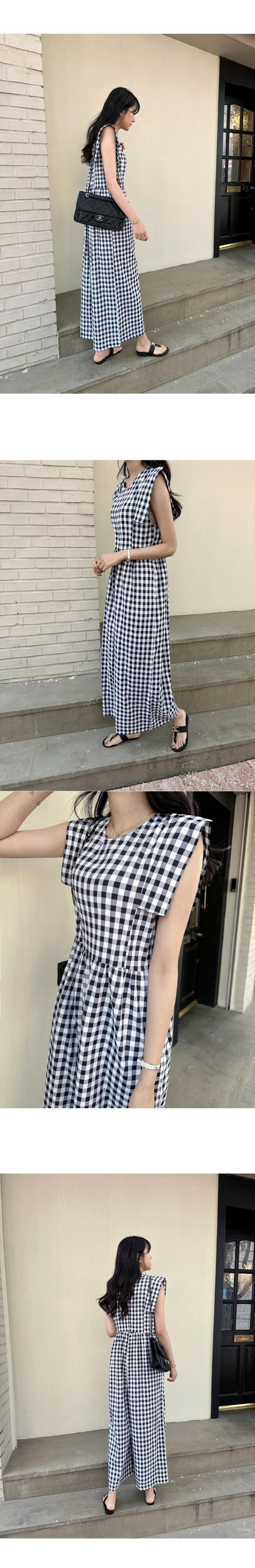 [EWQ] コントラストチェック柄レースアップジャンプスーツ夏潮コントラストカラーカジュアルフライングスリーブワイドレッグジャンプスーツ 16Y9541 サマー 夏物 ワイドパンツ