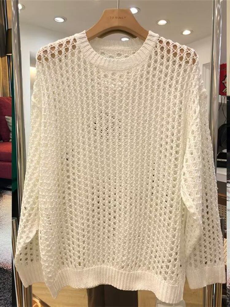 [EWQ] O ネック中空ニットウェア長袖夏視点ビッグサイズルーズ因果プルオーバートップ Y9423 ロング サマー 夏物 Oネック