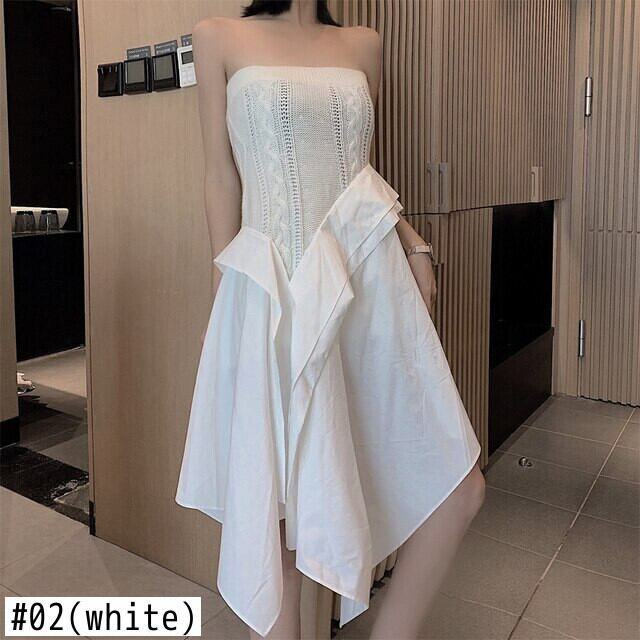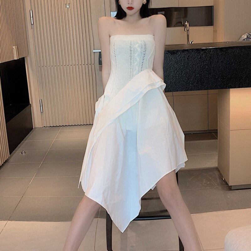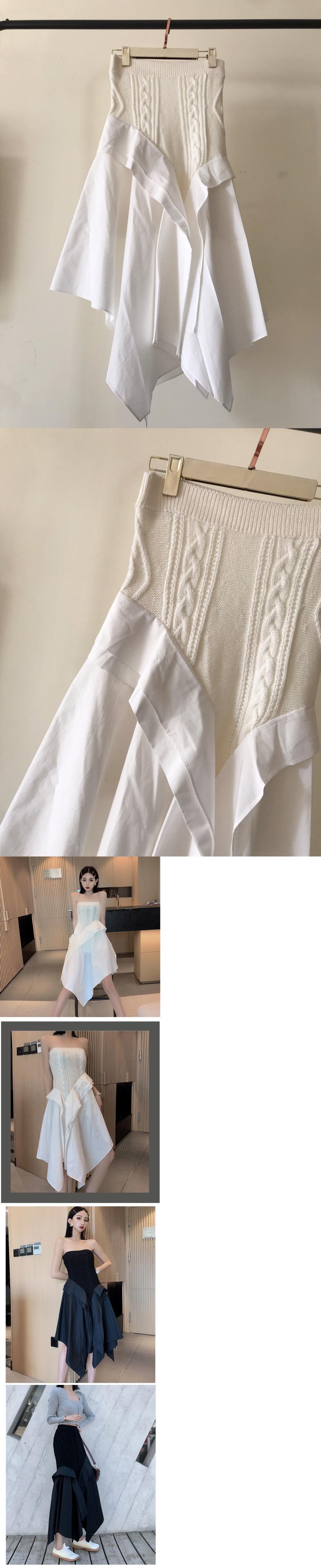 [EWQ] タイドオータム イレギュラーフリルヘム ニットステッチスカート ルーズウエストボトム 秋物