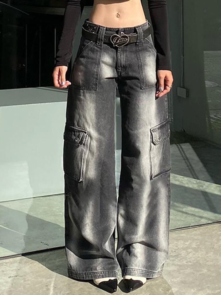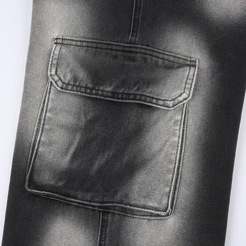 [EWQ] タイダイホワイトマルチポケットジーンズコントラストカラーウエストストリートデニムパンツ夏潮 サマー 夏物 ポケット多め