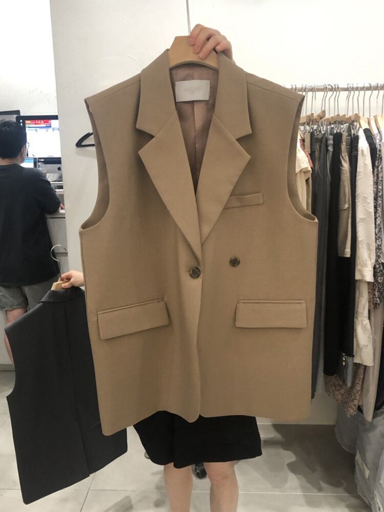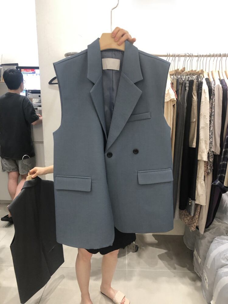 [EWQ] ラペルスーツベストダブルブレストボタンポケットノースリーブジャケット夏潮オールマッチ服 Y9276 サマー 夏物