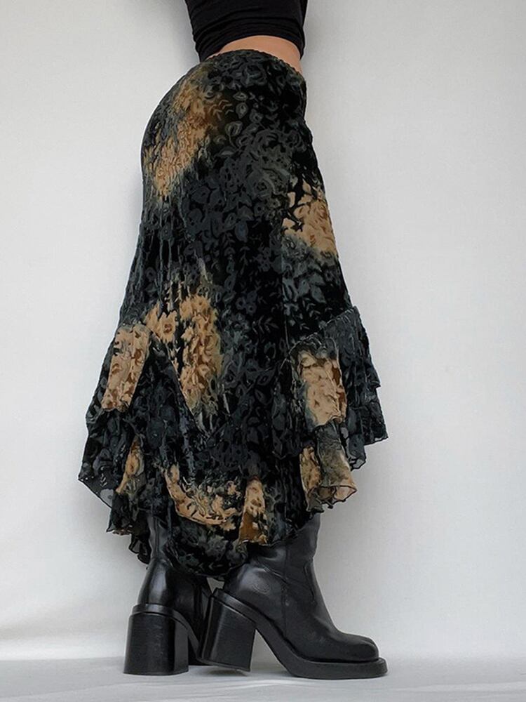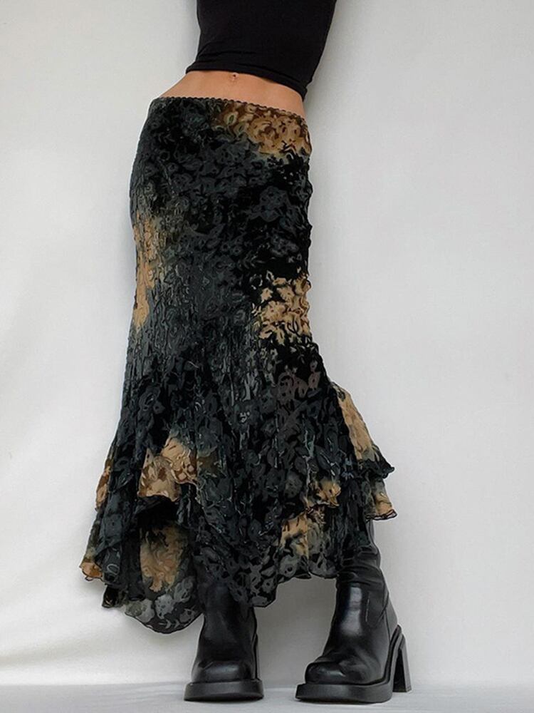 [EWQ] ヒョウ柄ローウエストスカート夏潮不規則メッシュミッドカーフスカートストリート服 サマー 夏物