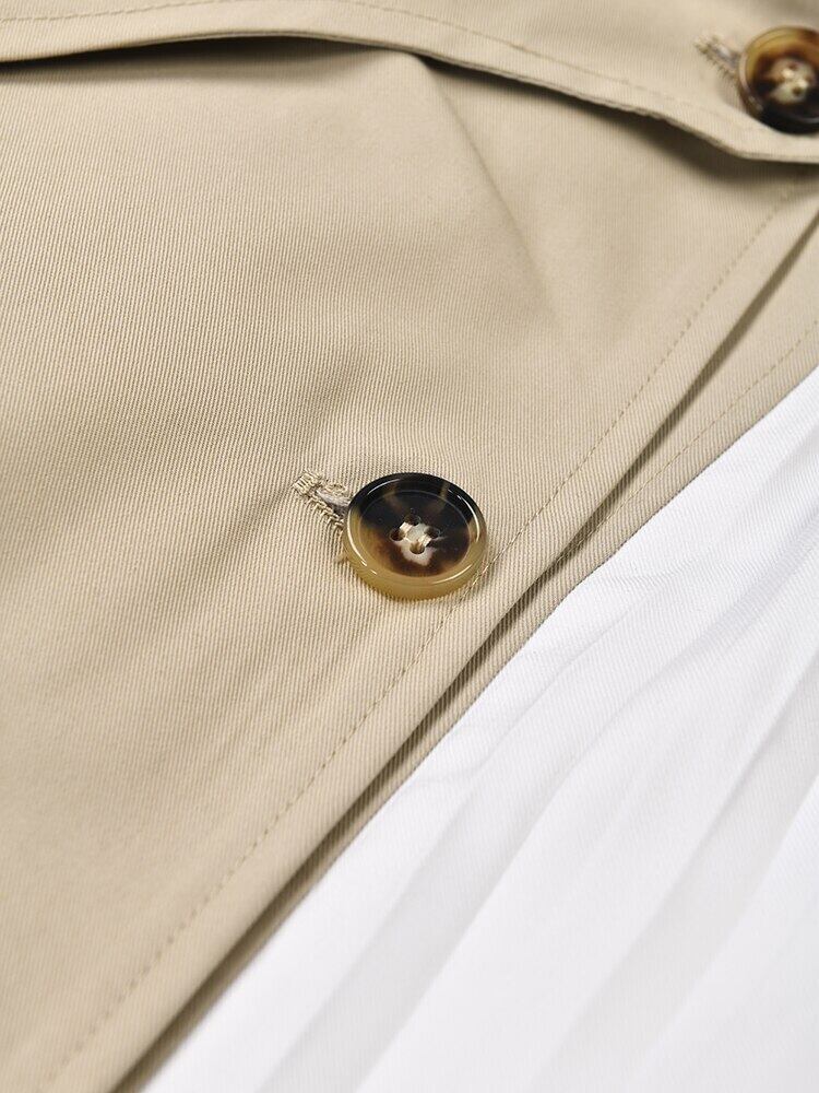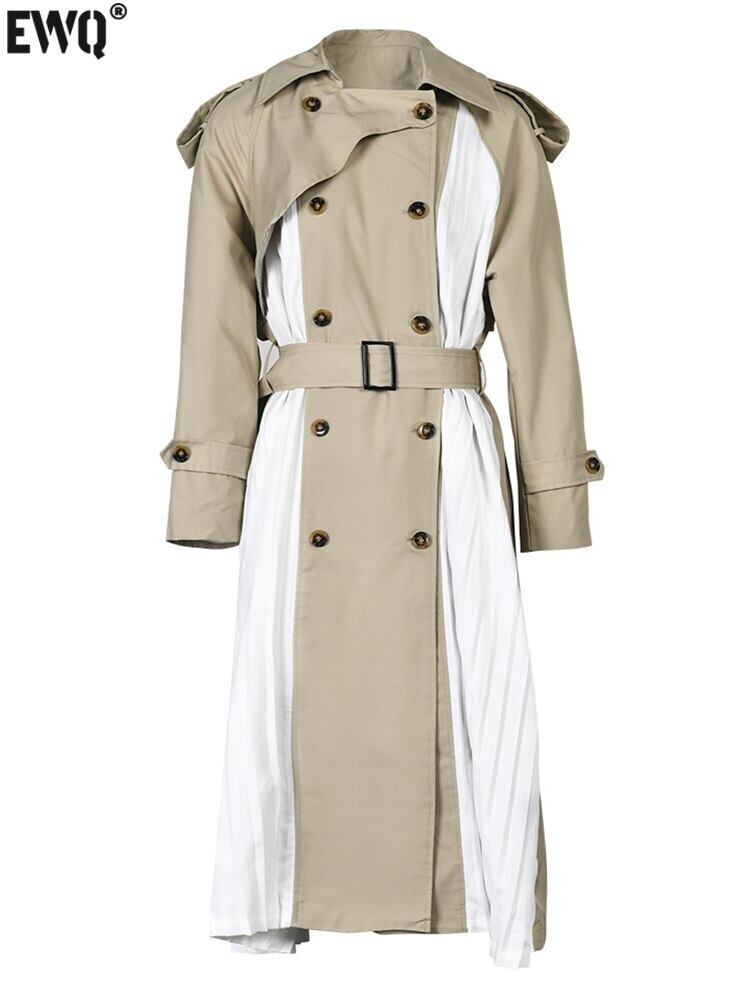 [EWQ] シックカーキプリーツビッグサイズロングトレンチ長袖ルーズフィットウインドブレーカー秋春オーバーコート スプリング 春物 オータム 秋物