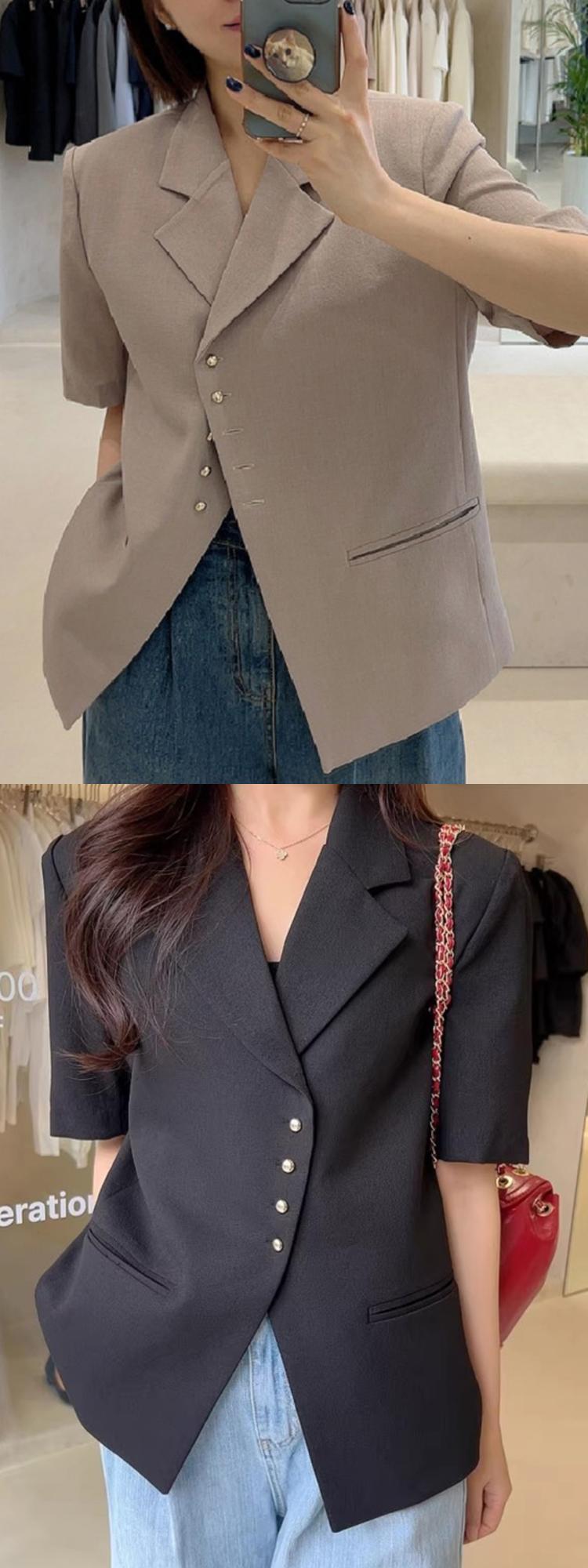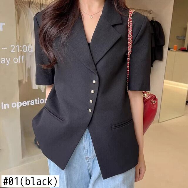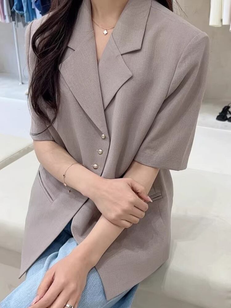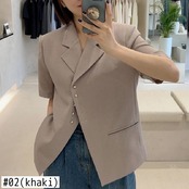 [EWQ] ノッチ薄型ブレザーコート夏潮半袖ルーズポケットシングルブレストスーツジャケット 16Y9591 ショート ハーフスリーブ サマー 夏物