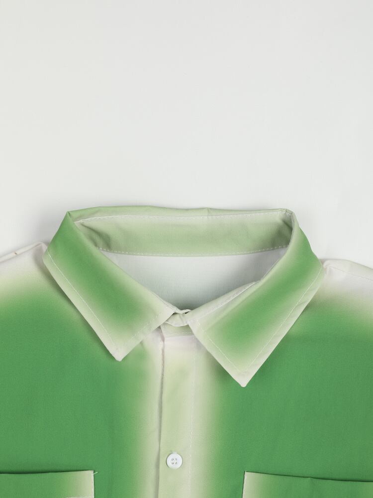 [EWQ] グラデーション ブラウス レディース プリント 大きいサイズ ラペル 長袖 シャツ タイド グリーン トップス 美しい レディース 16R3083 ロング