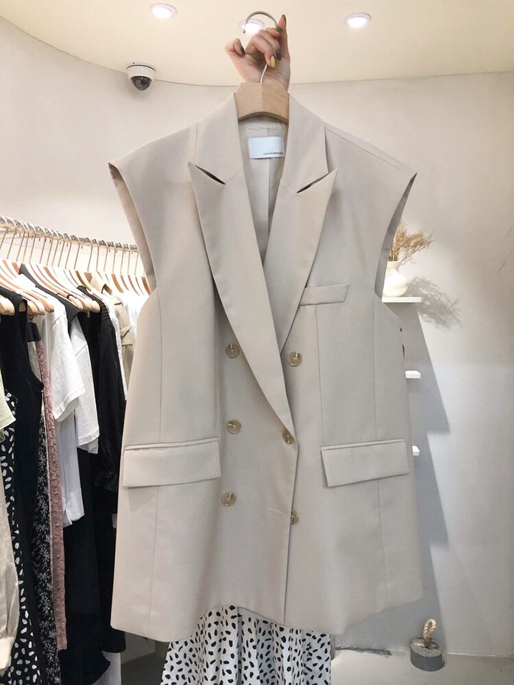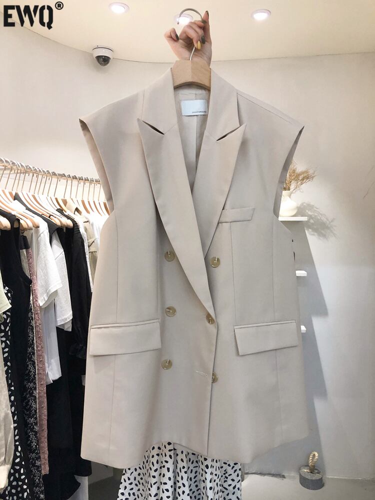 [EWQ] ダブルブレストスーツベストポケットノッチノースリーブジャケット夏潮トップス サマー 夏物