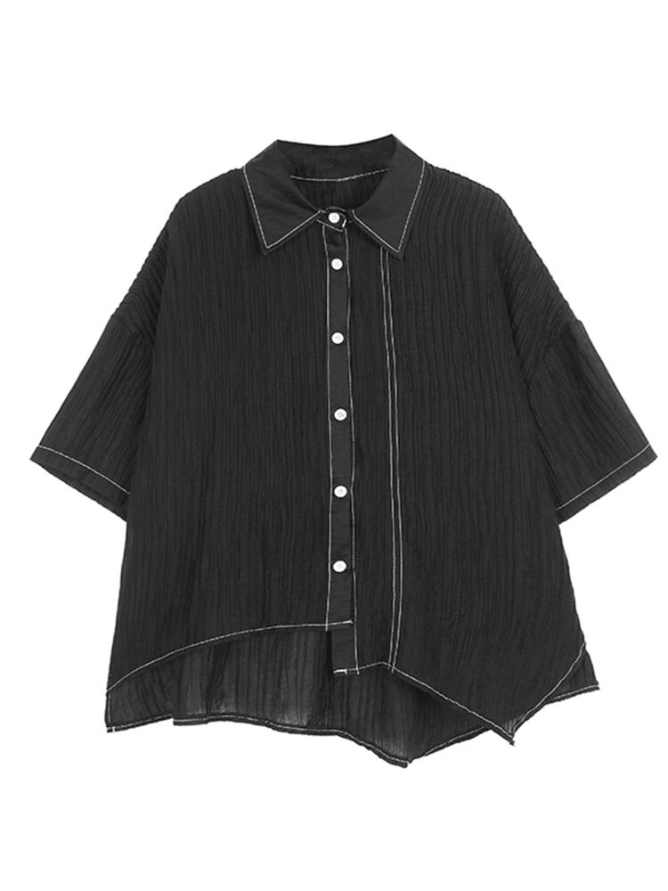[EWQ] オープンラインプリーツシャツビッグサイズシングルブレストイレギュラーヘムサマールーズトップ Y9533 夏物