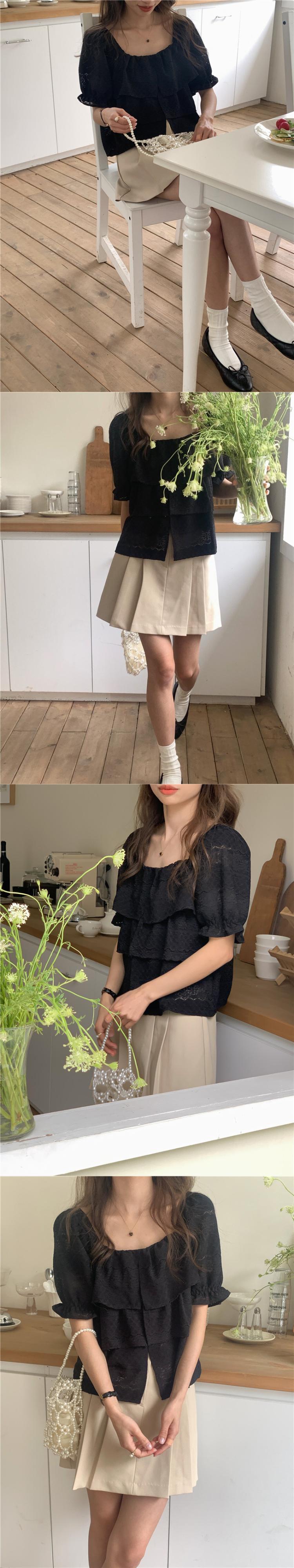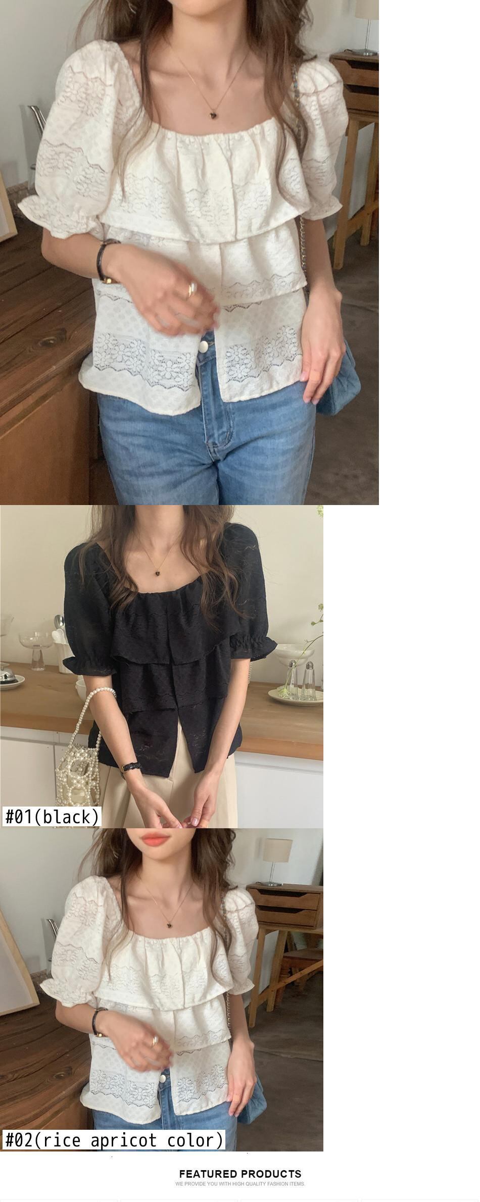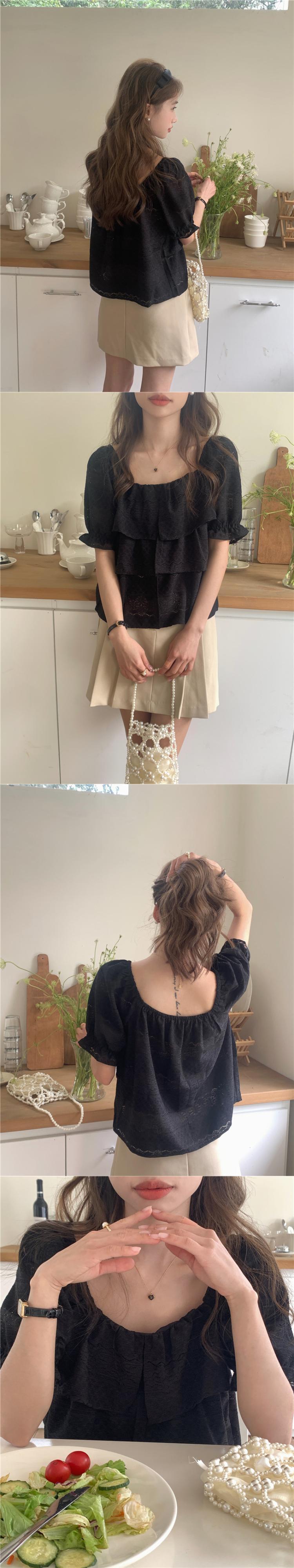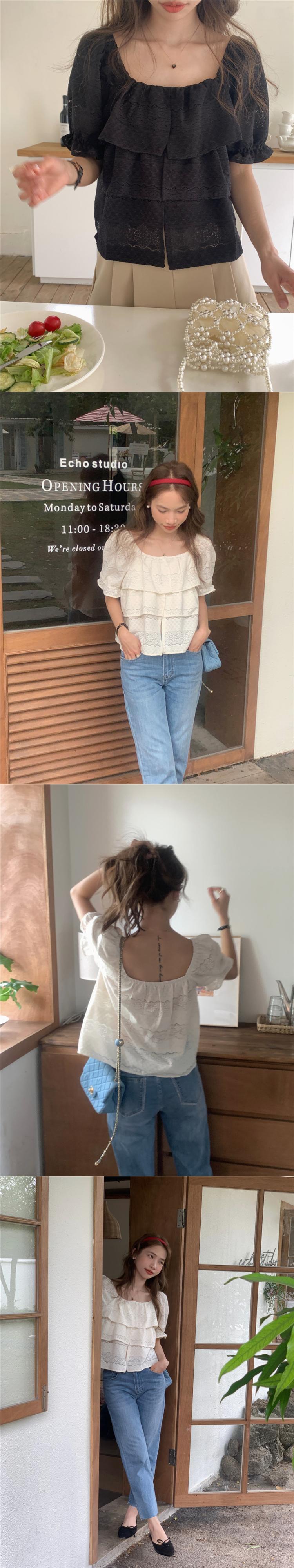 [EWQ] スクエアネックシャツフックフラワー中空パフスリーブブラウスサマータイドトップ Y9115 夏物 フラワーデザイン スクウェア